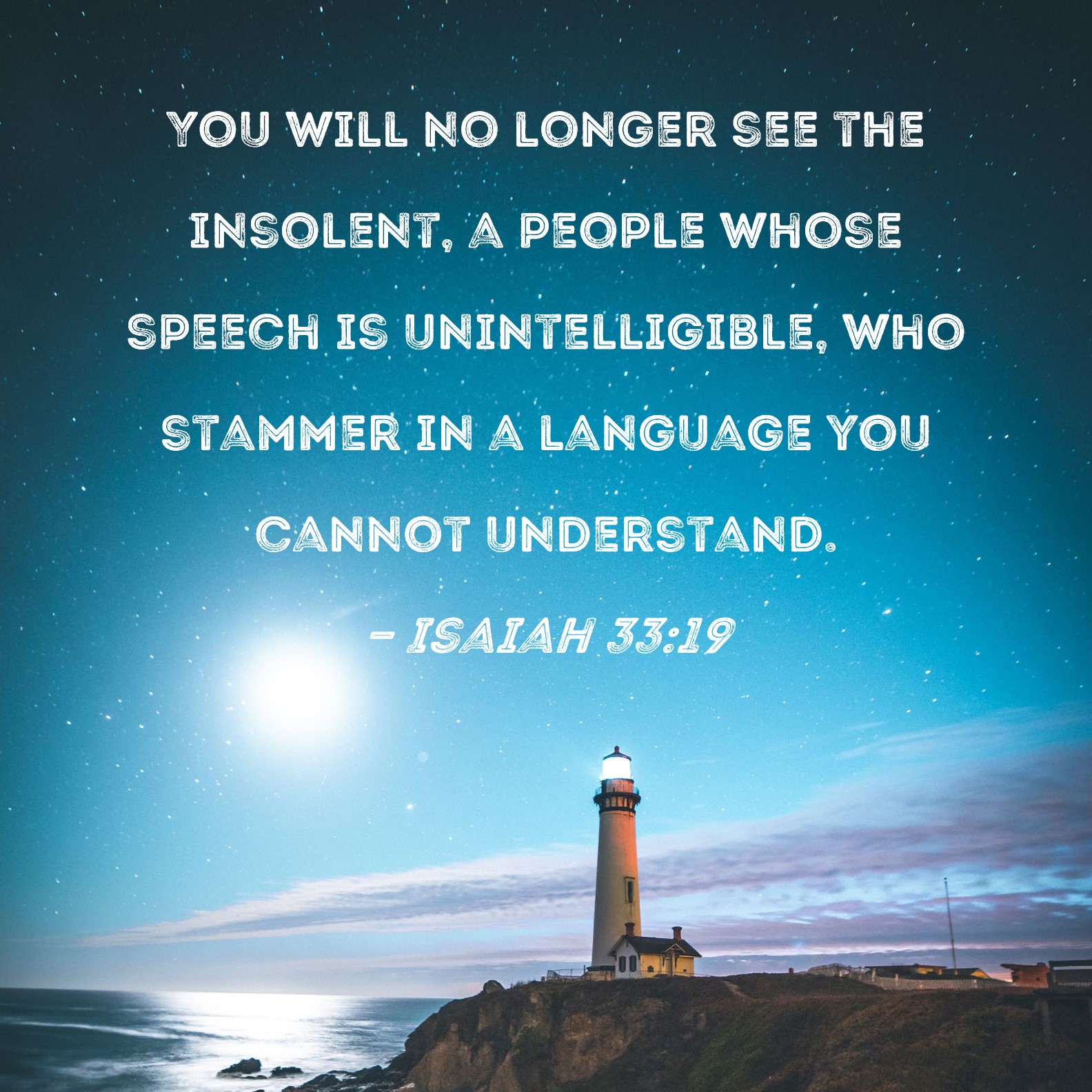 Isaiah 33:19 You will no longer see the insolent, a people whose speech is unintelligible, who stammer in a language you cannot understand.