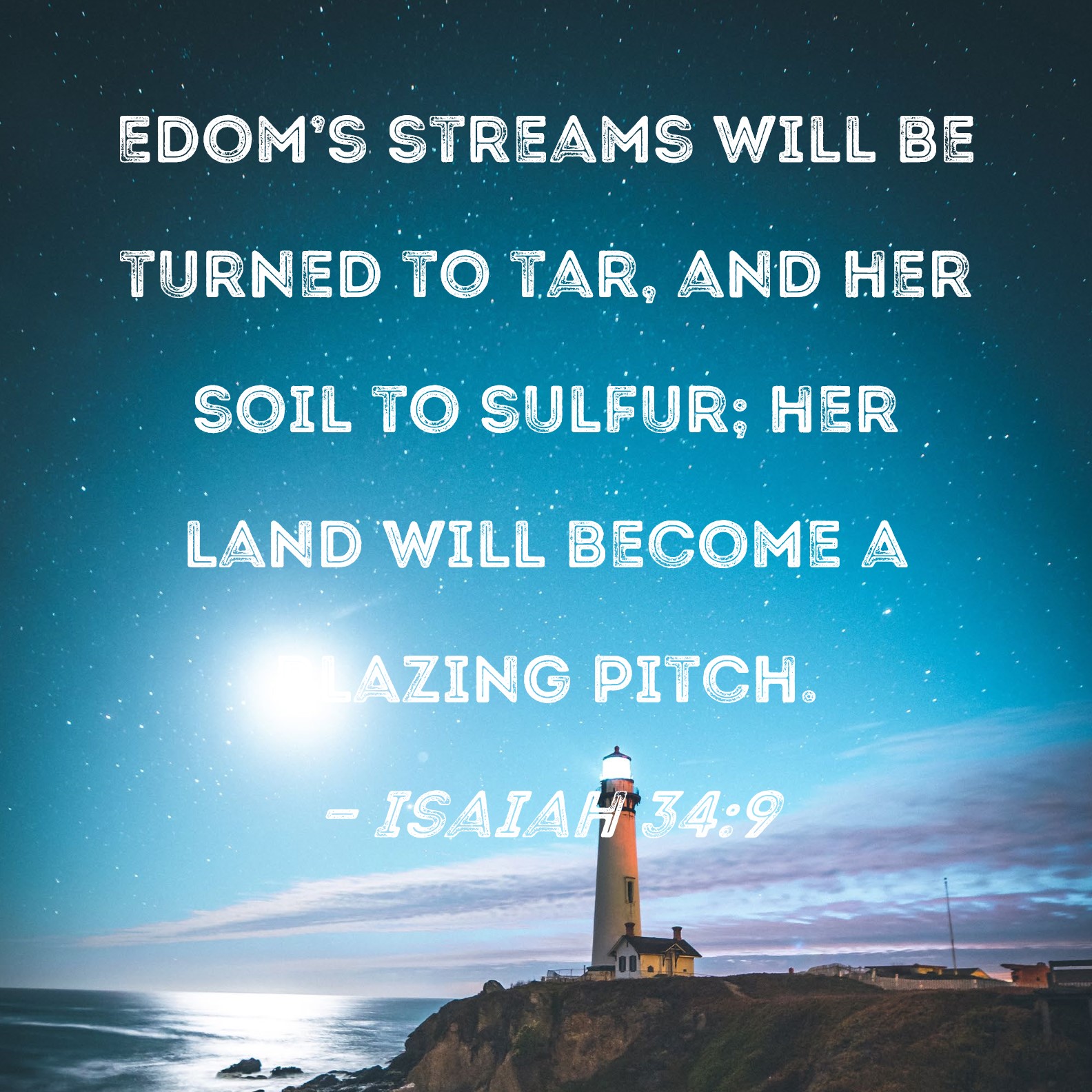 Isaiah 34:9 Edom's streams will be turned to tar, and her soil to sulfur; her land will become a blazing pitch.