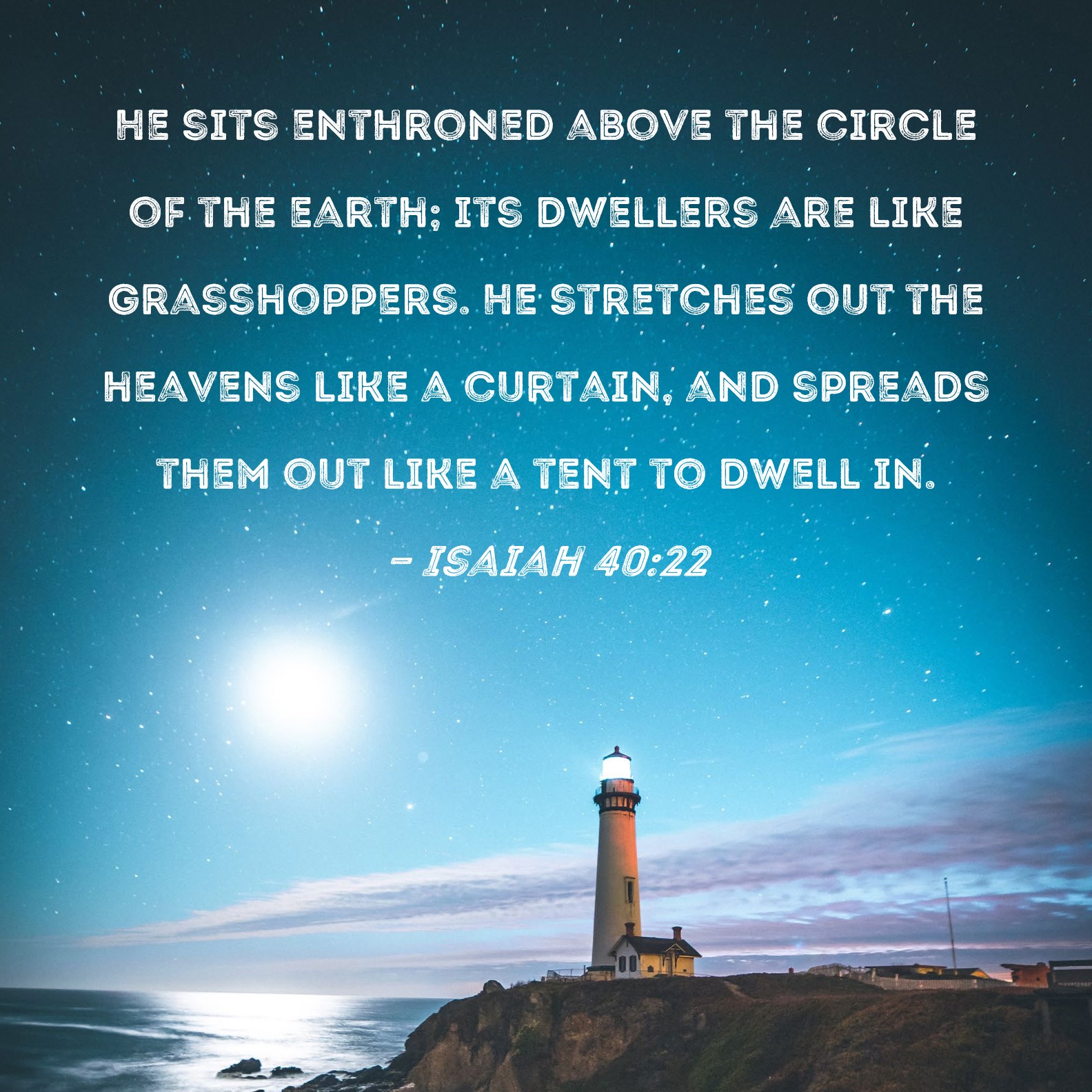 Isaiah 40:22 He sits enthroned above the circle of the earth; its dwellers are like grasshoppers. He stretches out the heavens like a curtain, and spreads them out like a tent to dwell in.