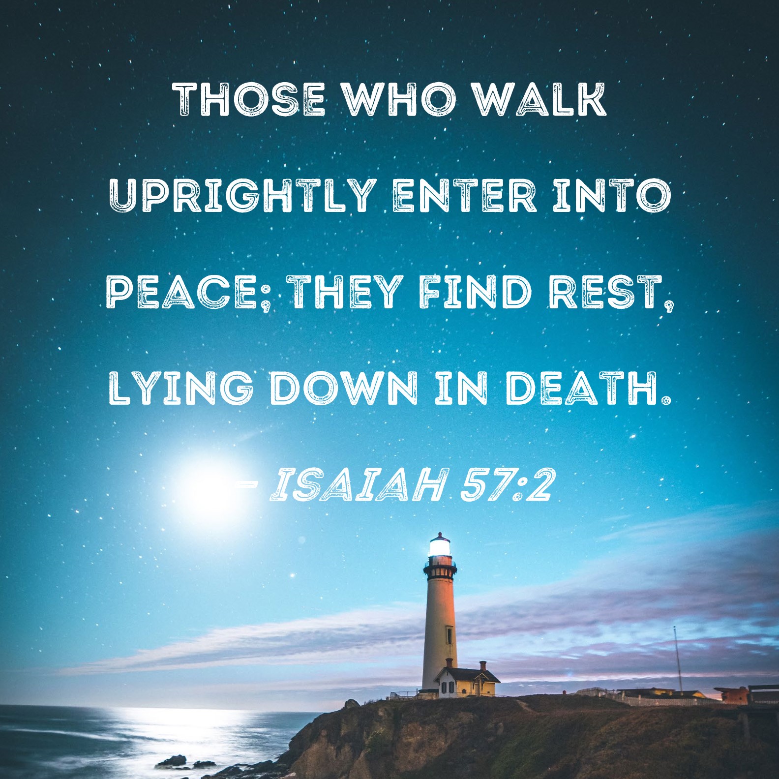 Isaiah 57:2 Those who walk uprightly enter into peace; they find rest, lying down in death.