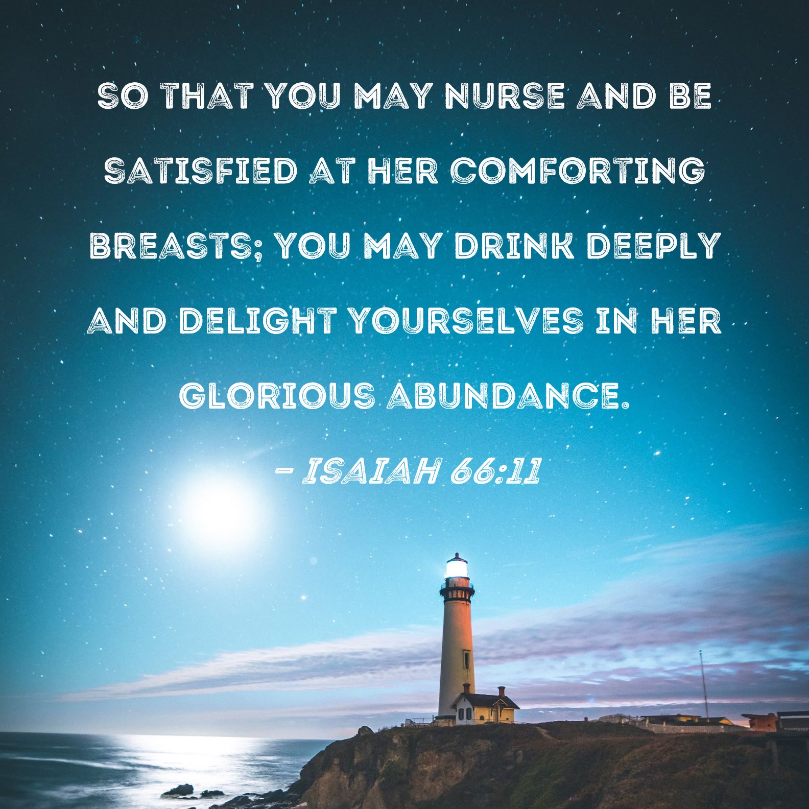 Isaiah 66:11 so that you may nurse and be satisfied at her comforting breasts; you may drink deeply and delight yourselves in her glorious abundance.