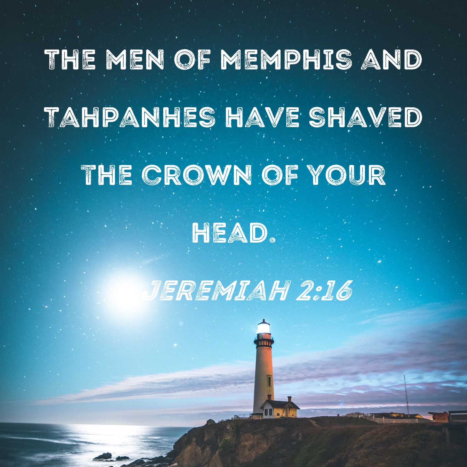 Jeremiah 2:16 The men of Memphis and Tahpanhes have shaved the crown of your head.