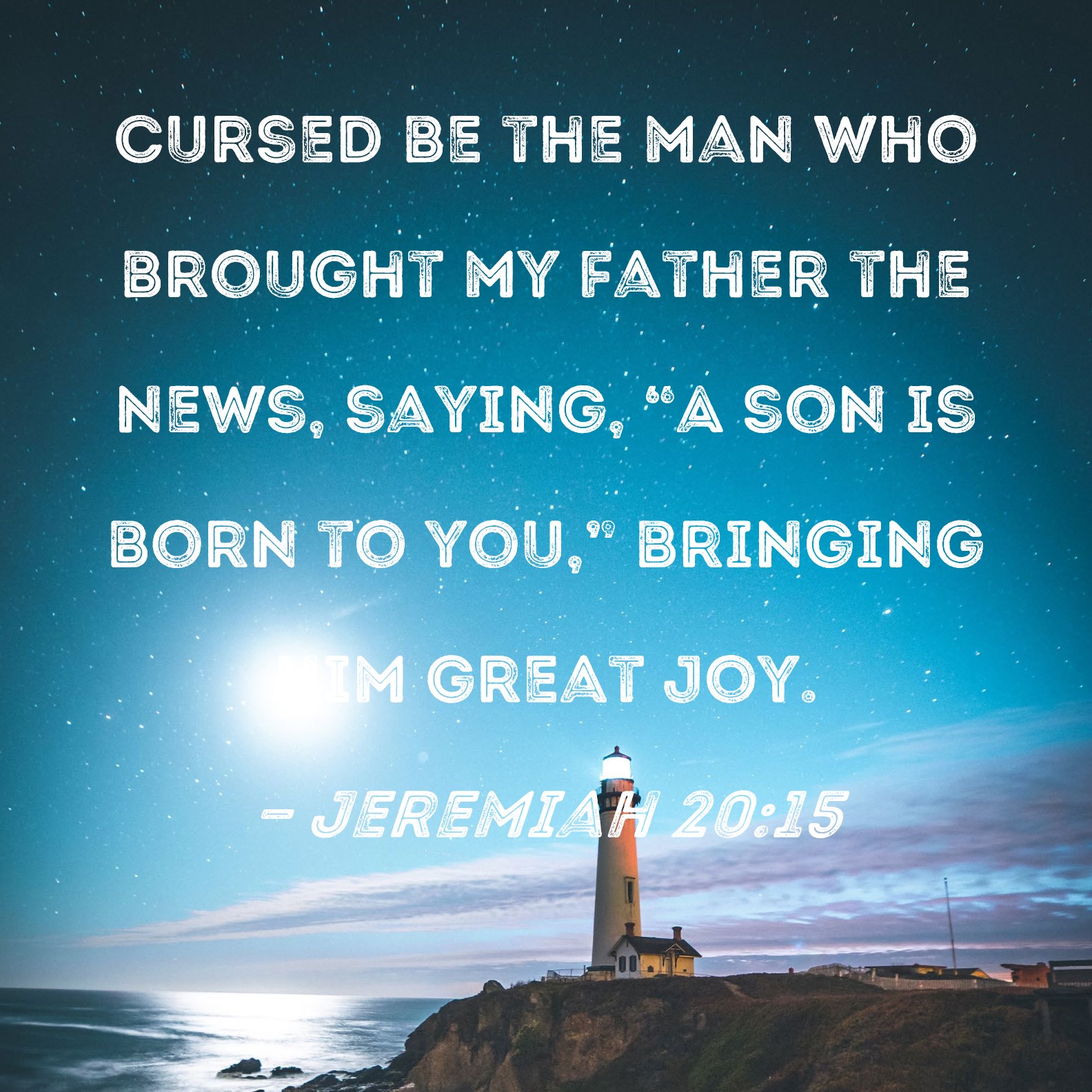 Jeremiah 20:15 Cursed be the man who brought my father the news, saying, "A son is born to you," bringing him great joy.
