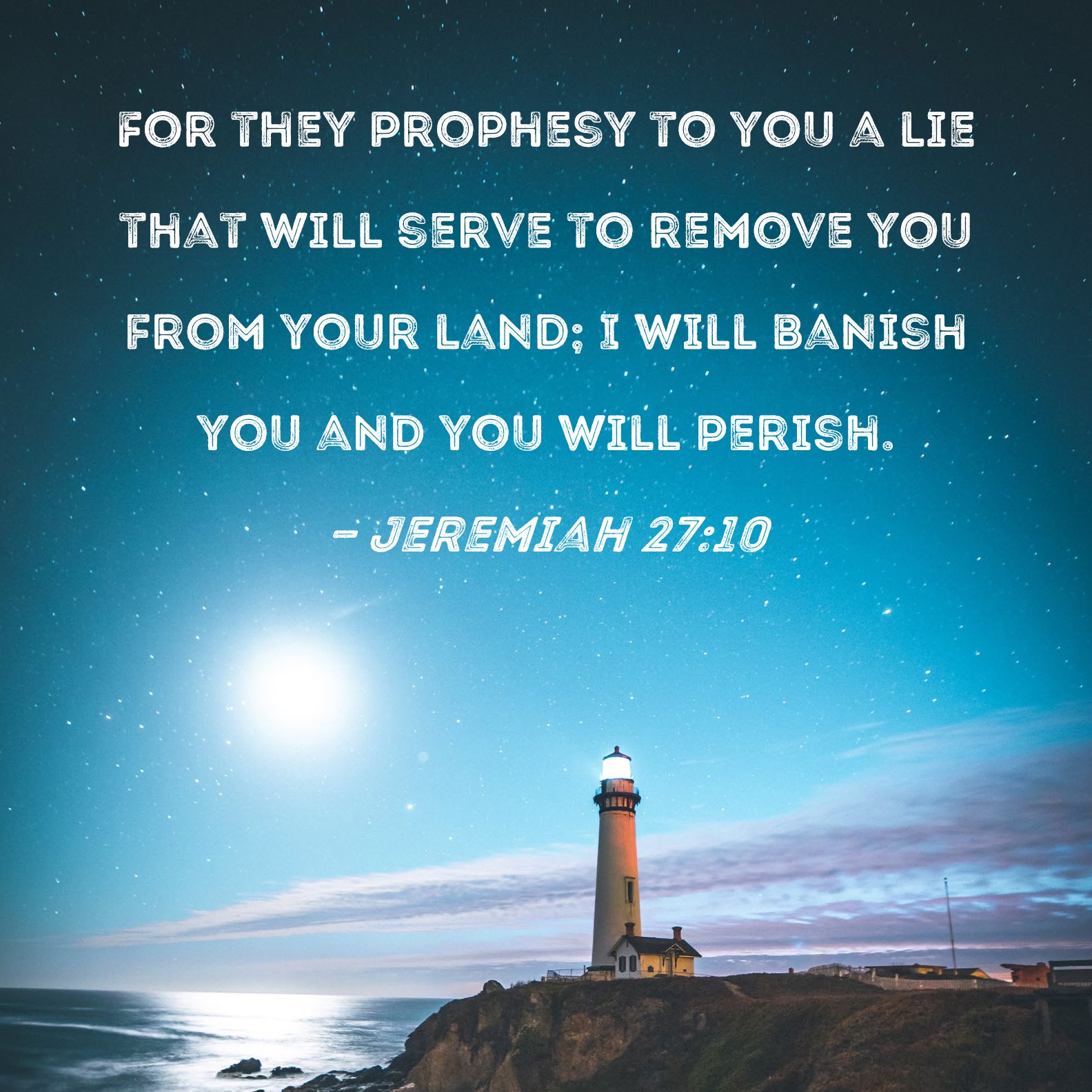 Jeremiah 27:10 For they prophesy to you a lie that will serve to remove you from your land; I will banish you and you will perish.