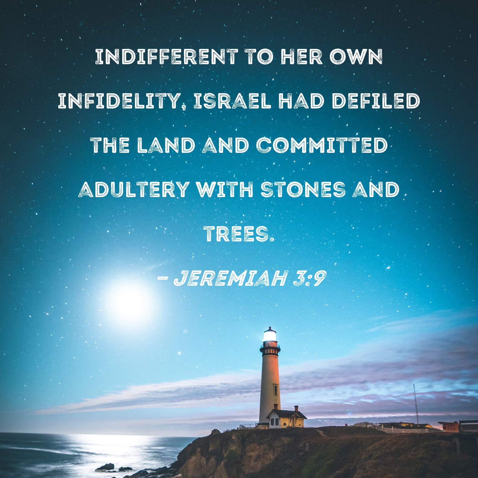 Jeremiah 3:9 Indifferent to her own infidelity, Israel had defiled the land and committed adultery with stones and trees.