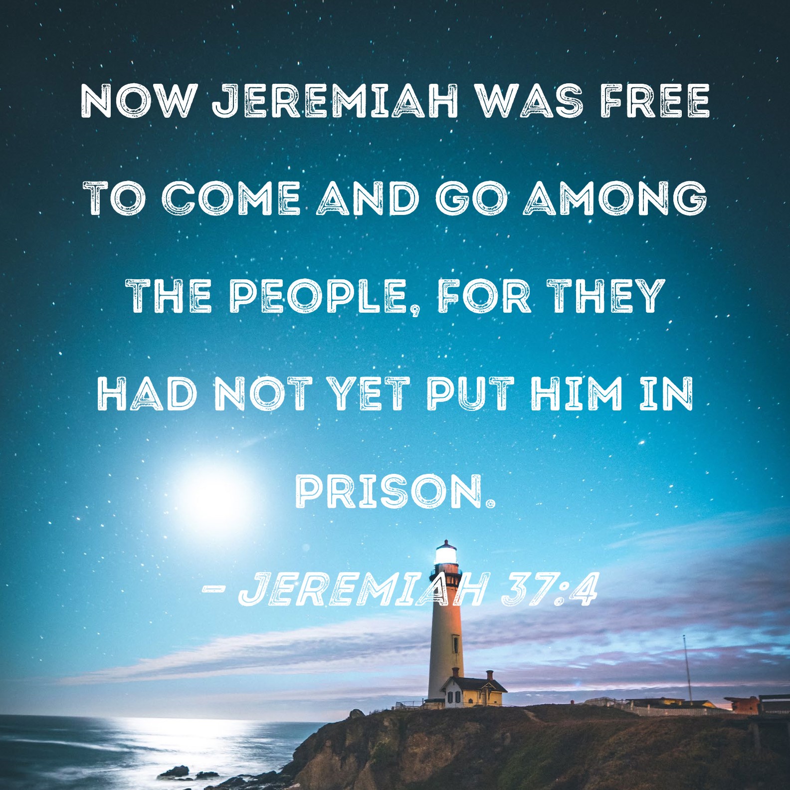 Jeremiah 37:4 Now Jeremiah was free to come and go among the people, for they had not yet put him in prison.