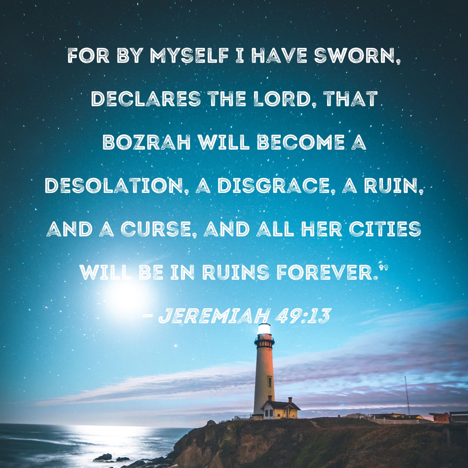 Jeremiah 49:13 For by Myself I have sworn, declares the LORD, that Bozrah will become a desolation, a disgrace, a ruin, and a curse, and all her cities will be in ruins forever."