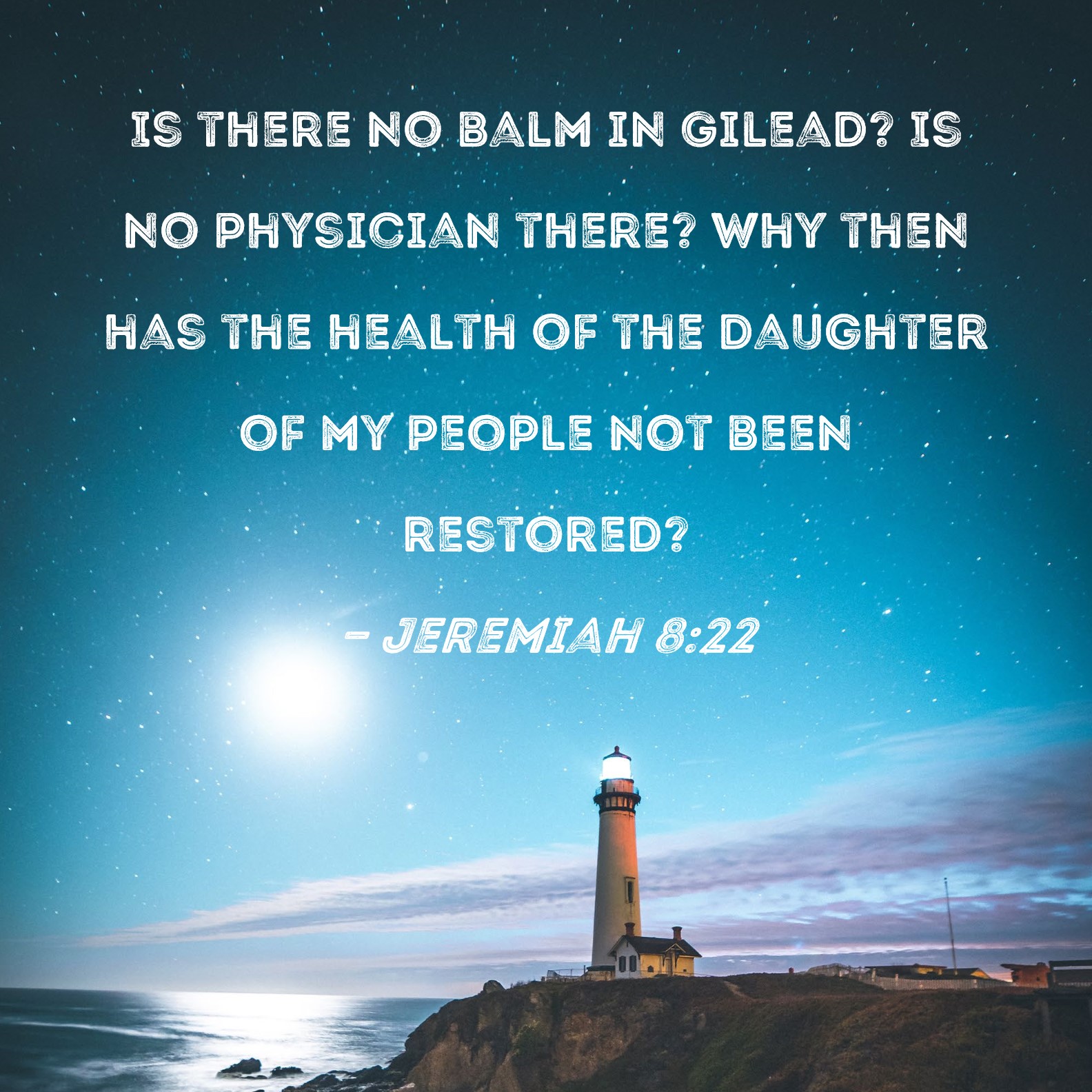 Jeremiah 8:22 Is there no balm in Gilead? Is no physician there? Why then has the health of the daughter of my people not been restored?