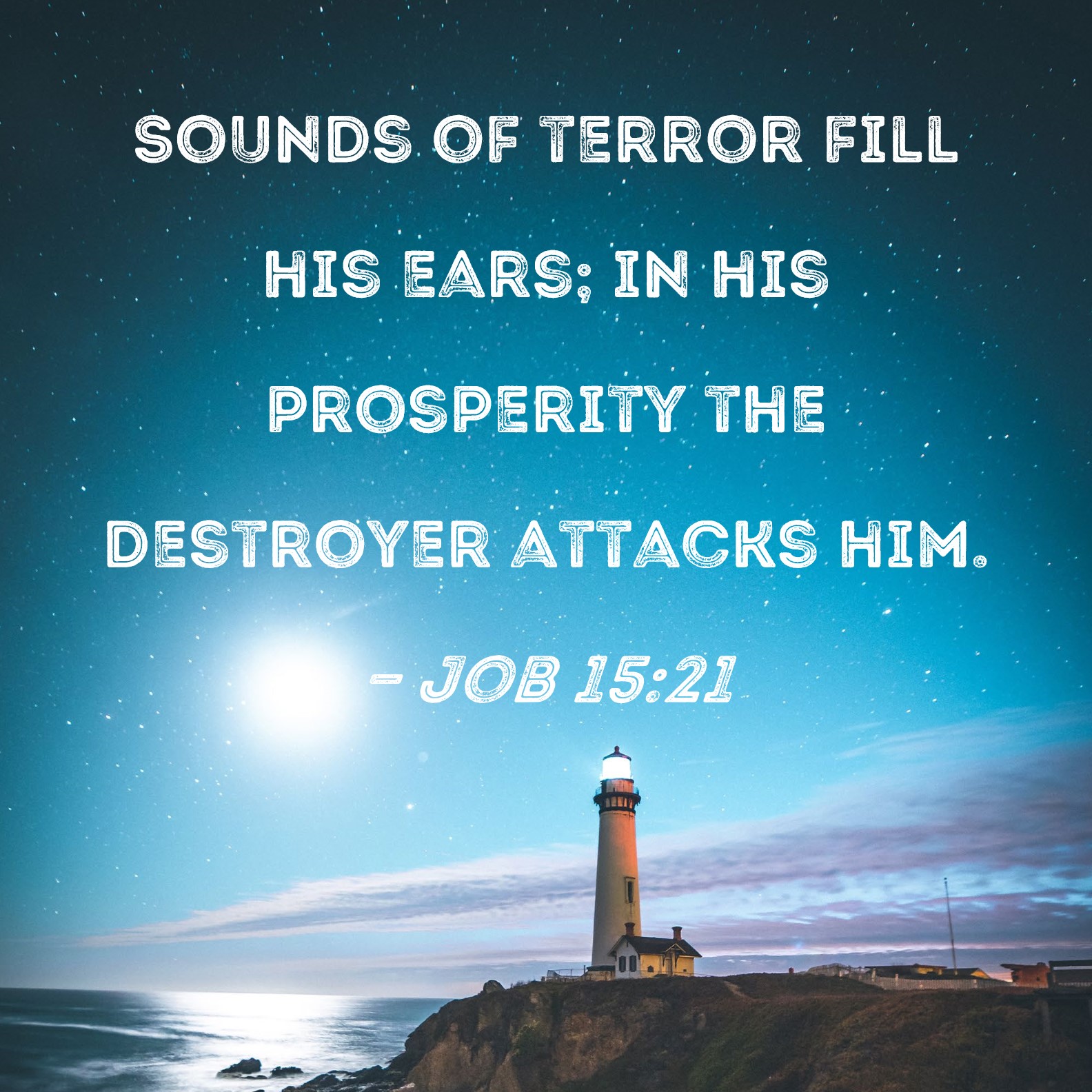 Job 15:21 Sounds of terror fill his ears; in his prosperity the destroyer attacks him.