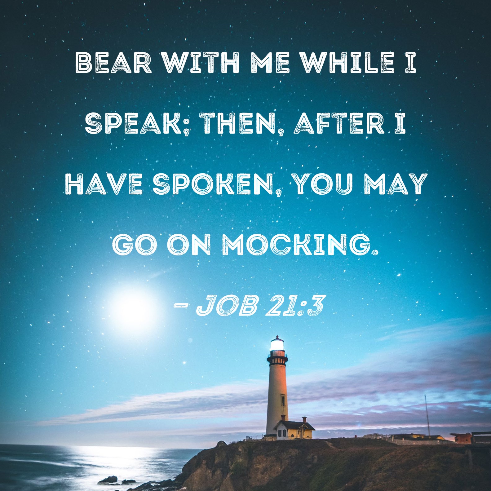 Job 21:3 Bear with me while I speak; then, after I have spoken, you may go on mocking.