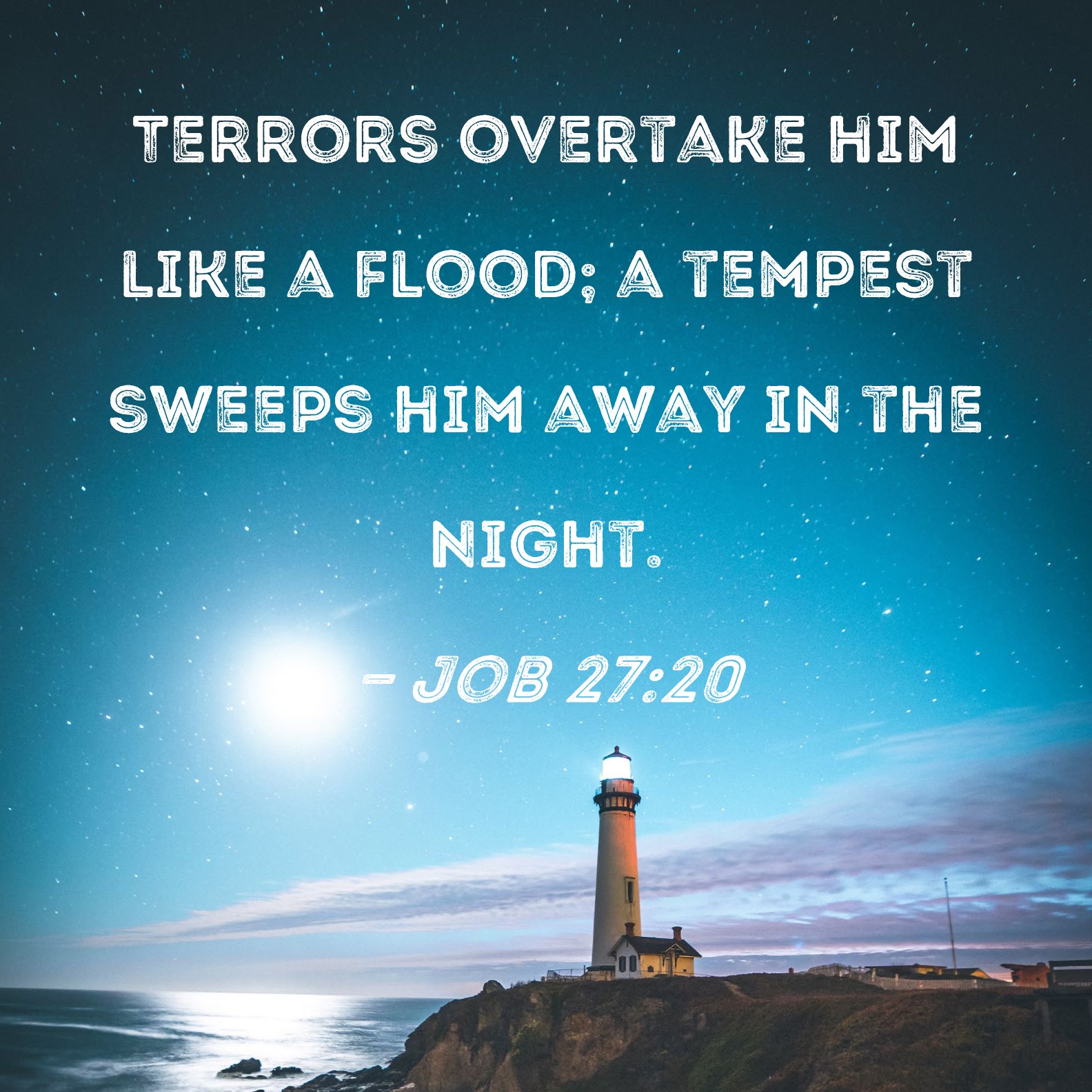 Job 27:20 Terrors overtake him like a flood; a tempest sweeps him away in the night.