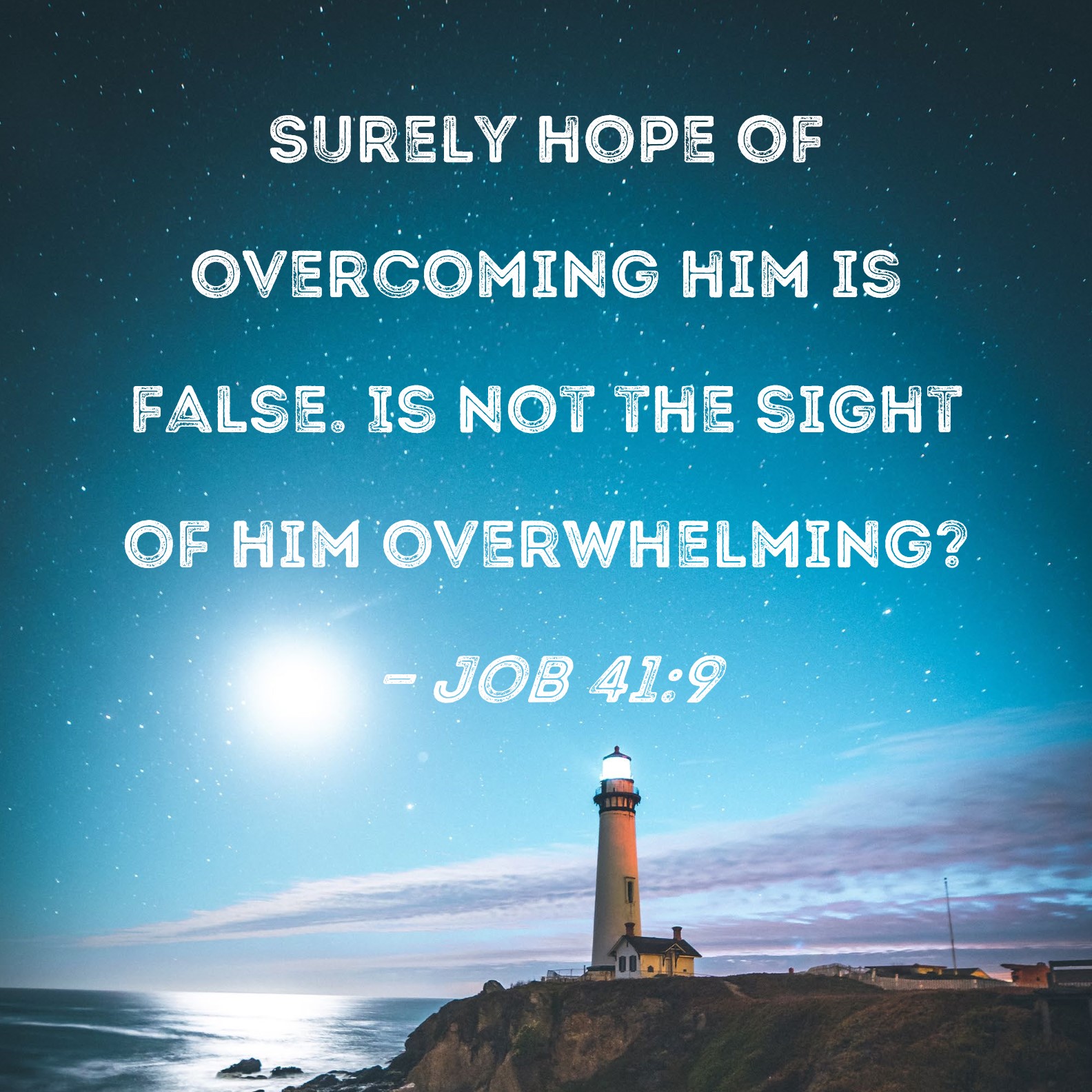 Job 41:9 Surely hope of overcoming him is false. Is not the sight of him overwhelming?