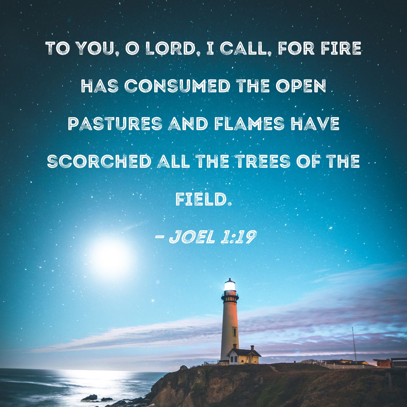 Joel 1:19 To You, O LORD, I call, for fire has consumed the open pastures and flames have scorched all the trees of the field.