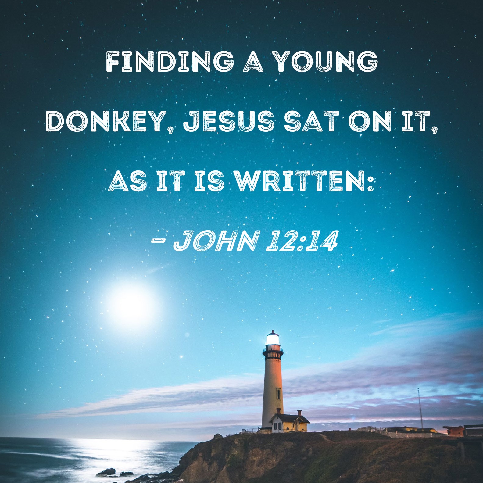 John 12:14 Finding a young donkey, Jesus sat on it, as it is written: