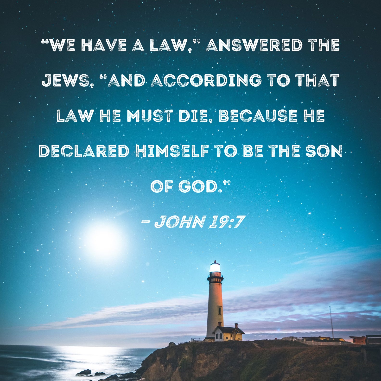 John 19:7 "We have a law," answered the Jews, "and according to that law He must die, because He declared Himself to be the Son of God."