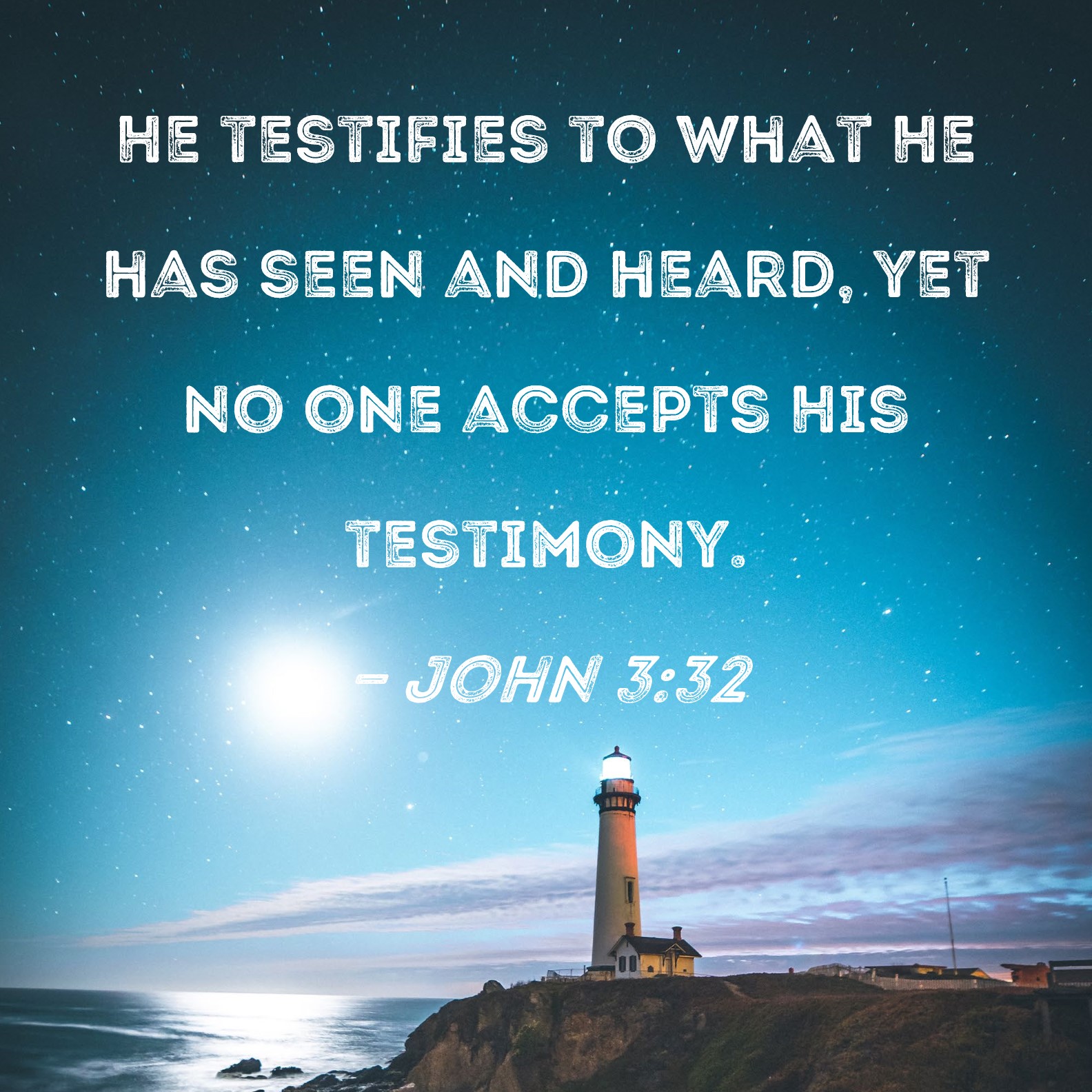 John 3:32 He testifies to what He has seen and heard, yet no one accepts His testimony.