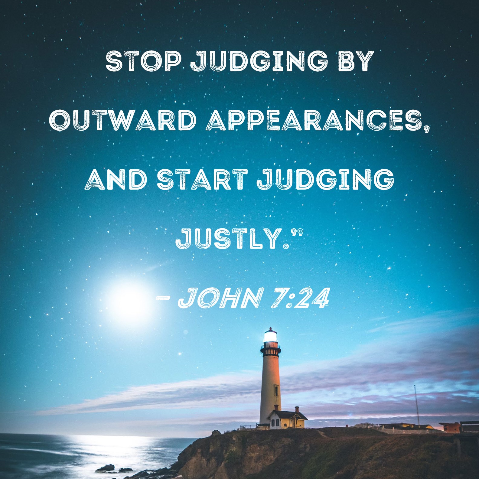 John 7:24 Stop judging by outward appearances, and start judging justly."