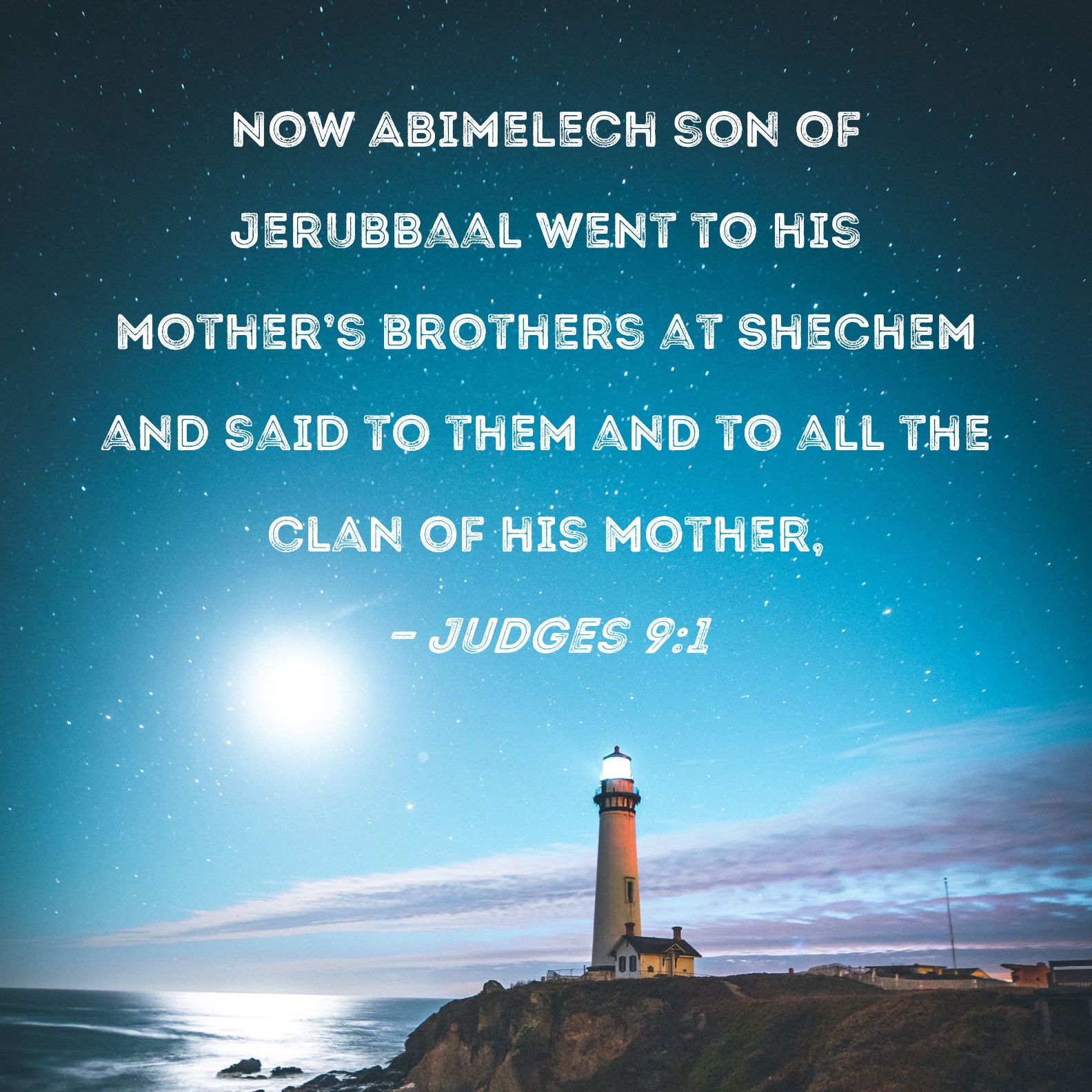 Judges 9:1 Now Abimelech son of Jerubbaal went to his mother's brothers at Shechem and said to them and to all the clan of his mother,