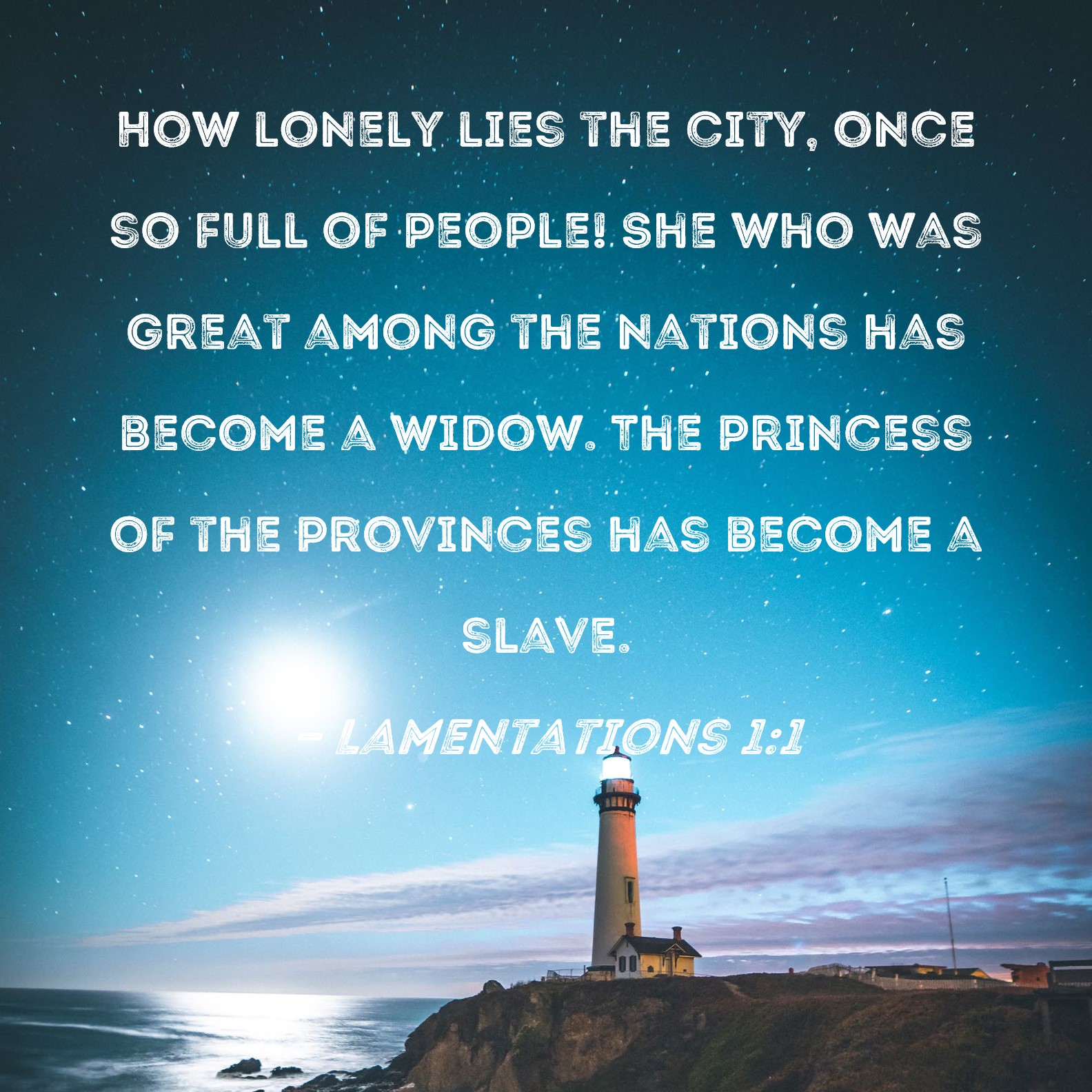 Lamentations 1:1 How lonely lies the city, once so full of people! She who was great among the nations has become a widow. The princess of the provinces has become a slave.