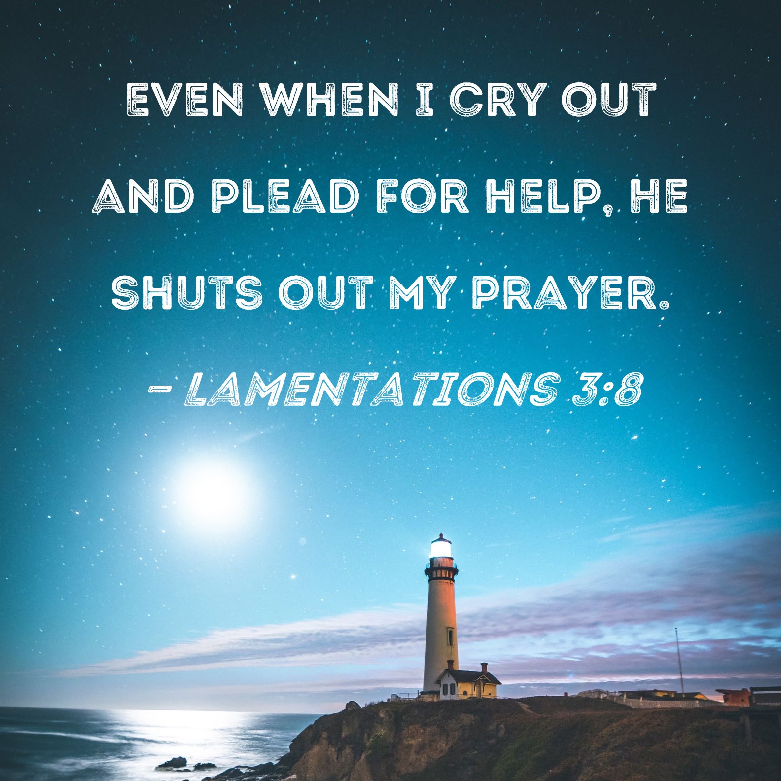 Lamentations 3:8 Even when I cry out and plead for help, He shuts out my prayer.