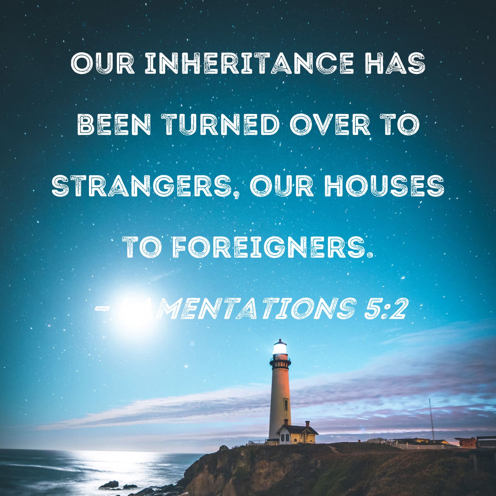 Lamentations 5:2 Our inheritance has been turned over to strangers, our houses to foreigners.