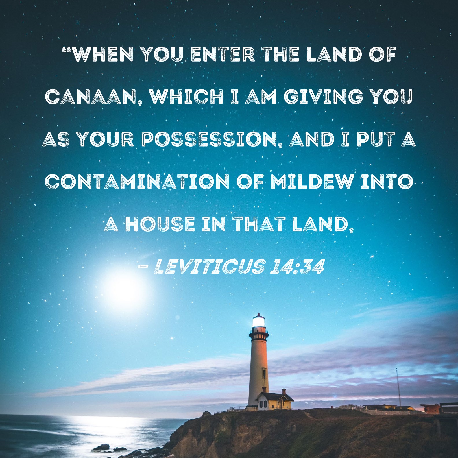 Leviticus 14:34 "When you enter the land of Canaan, which I am giving you as your possession, and I put a contamination of mildew into a house in that land,
