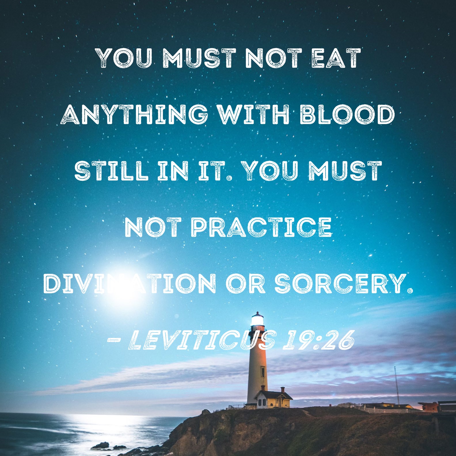 “‘You shall not eat any meat with the blood still in it. You shall not use enchantments, nor practice sorcery.