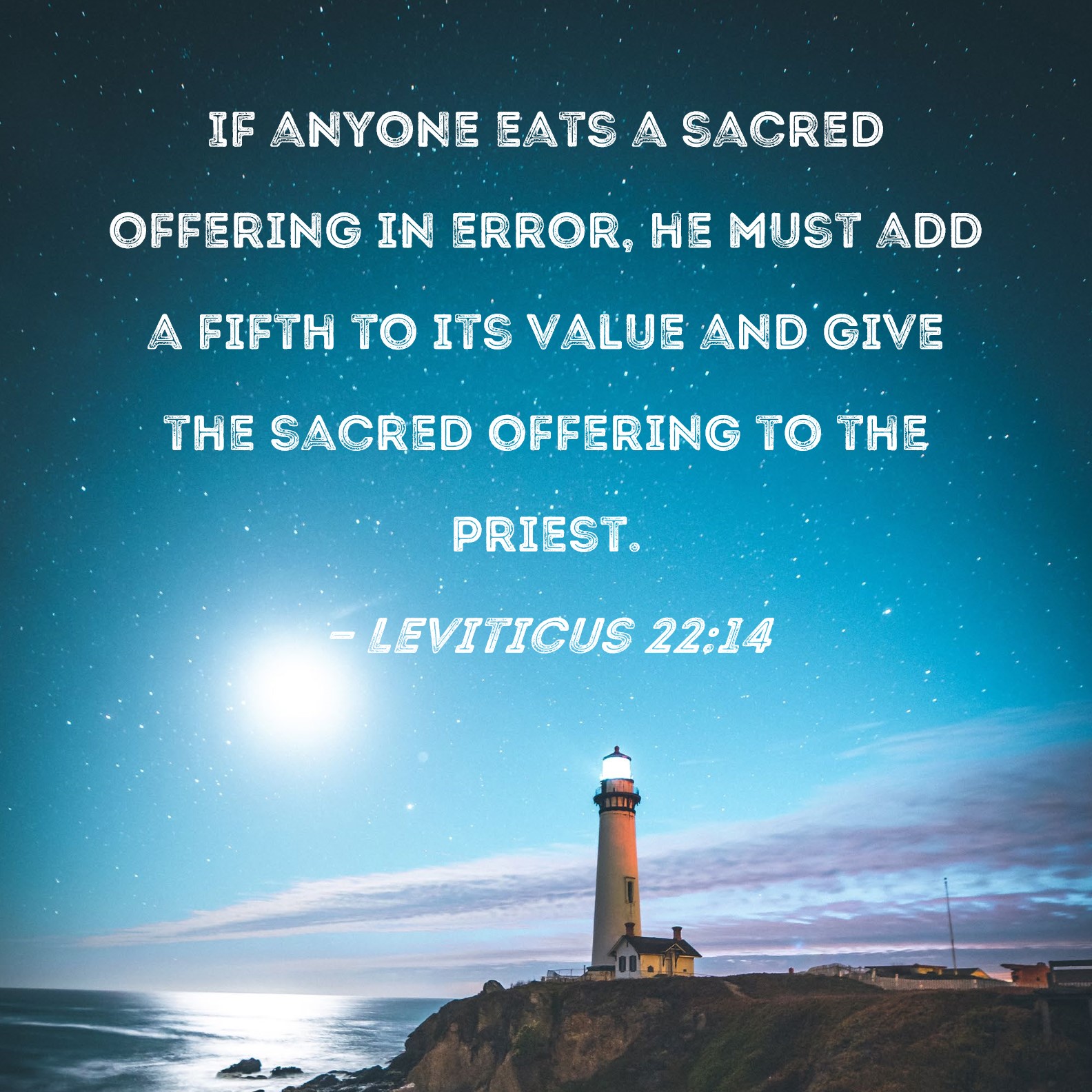Leviticus 22:14 If anyone eats a sacred offering in error, he must add a fifth to its value and give the sacred offering to the priest.