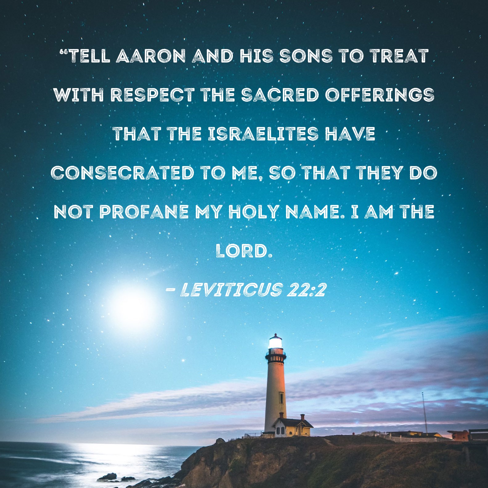 Leviticus 22:2 "Tell Aaron and his sons to treat with respect the sacred offerings that the Israelites have consecrated to Me, so that they do not profane My holy name. I am the LORD.