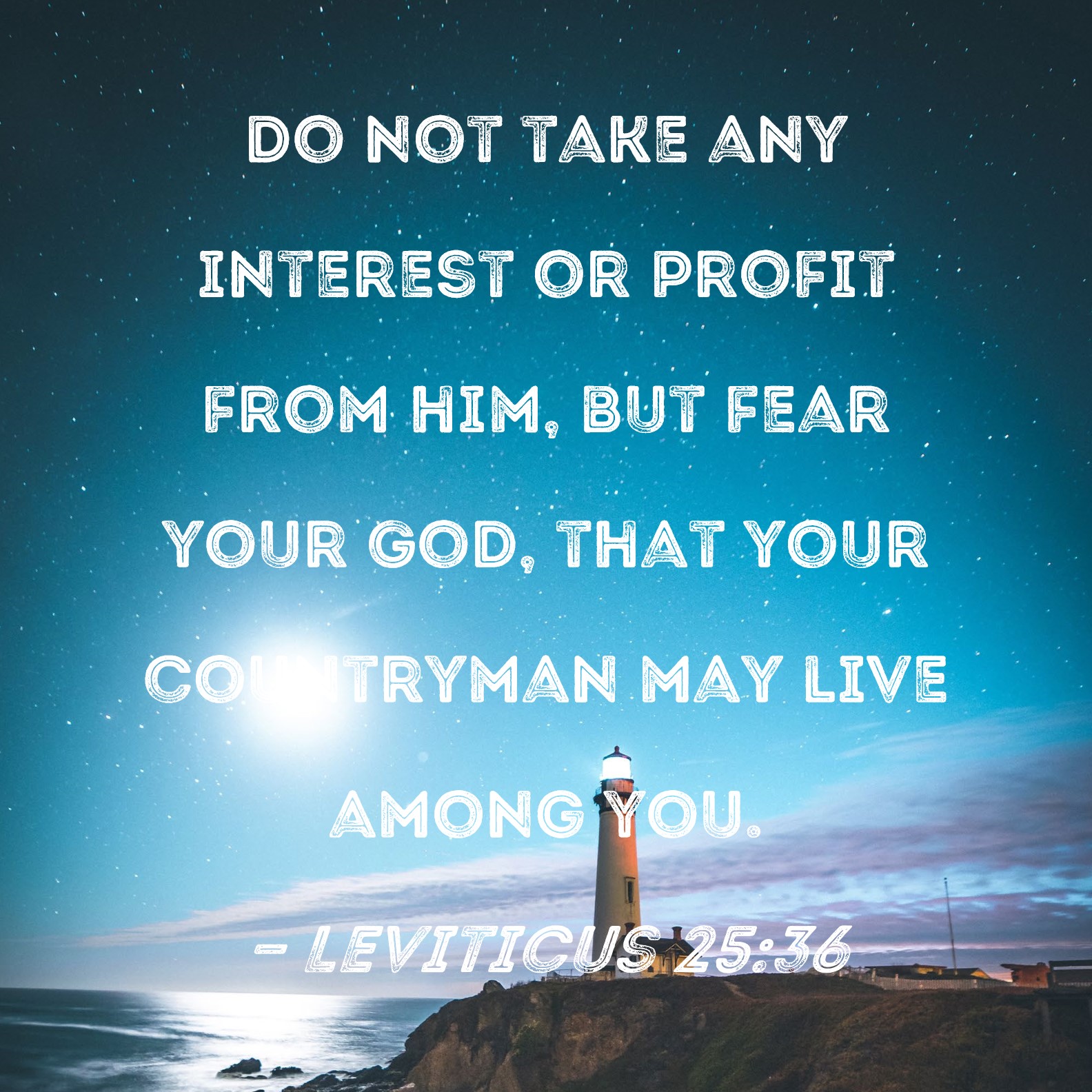 Leviticus 25:36 Do not take any interest or profit from him, but fear your God, that your countryman may live among you.