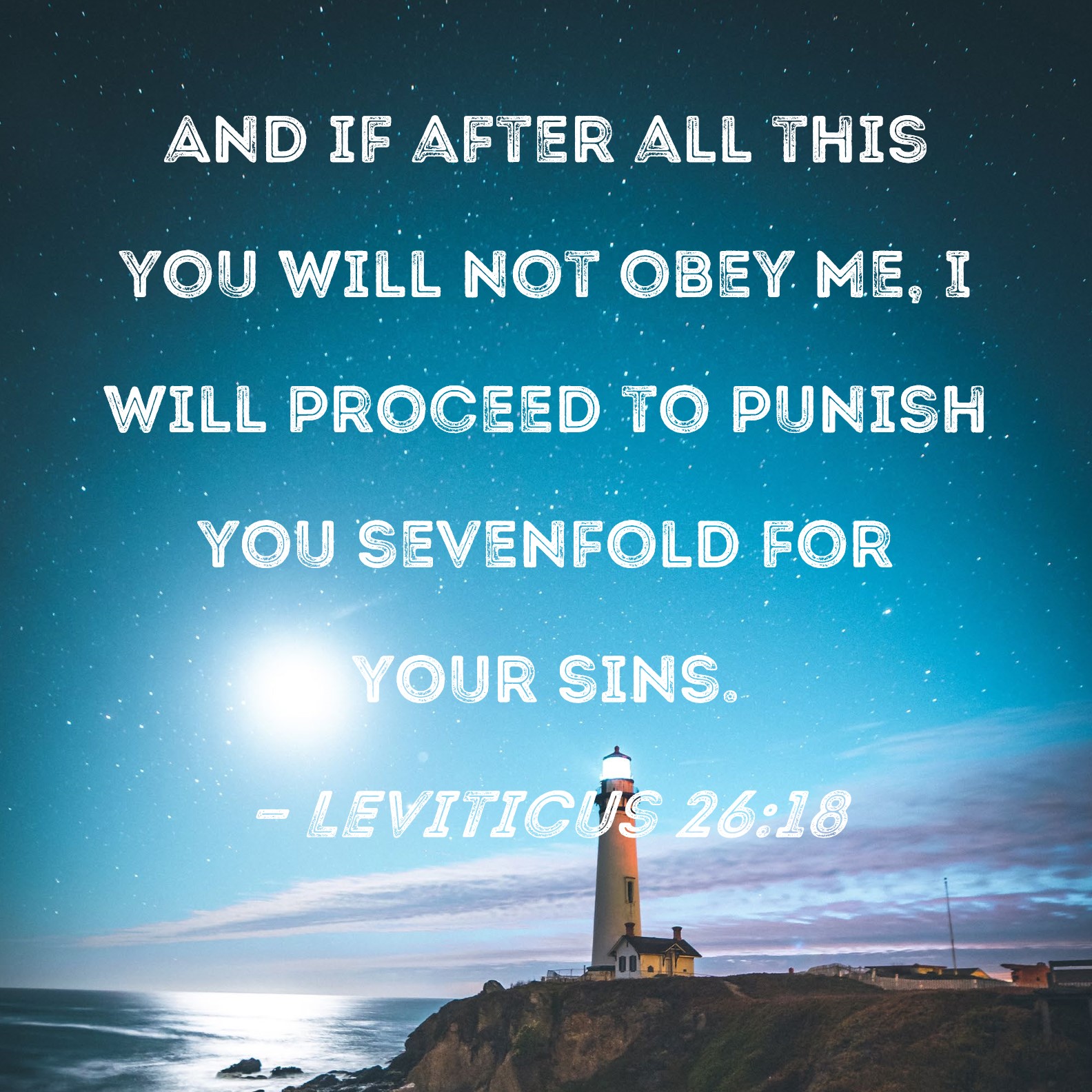 Leviticus 26:18 And if after all this you will not obey Me, I will proceed to punish you sevenfold for your sins.