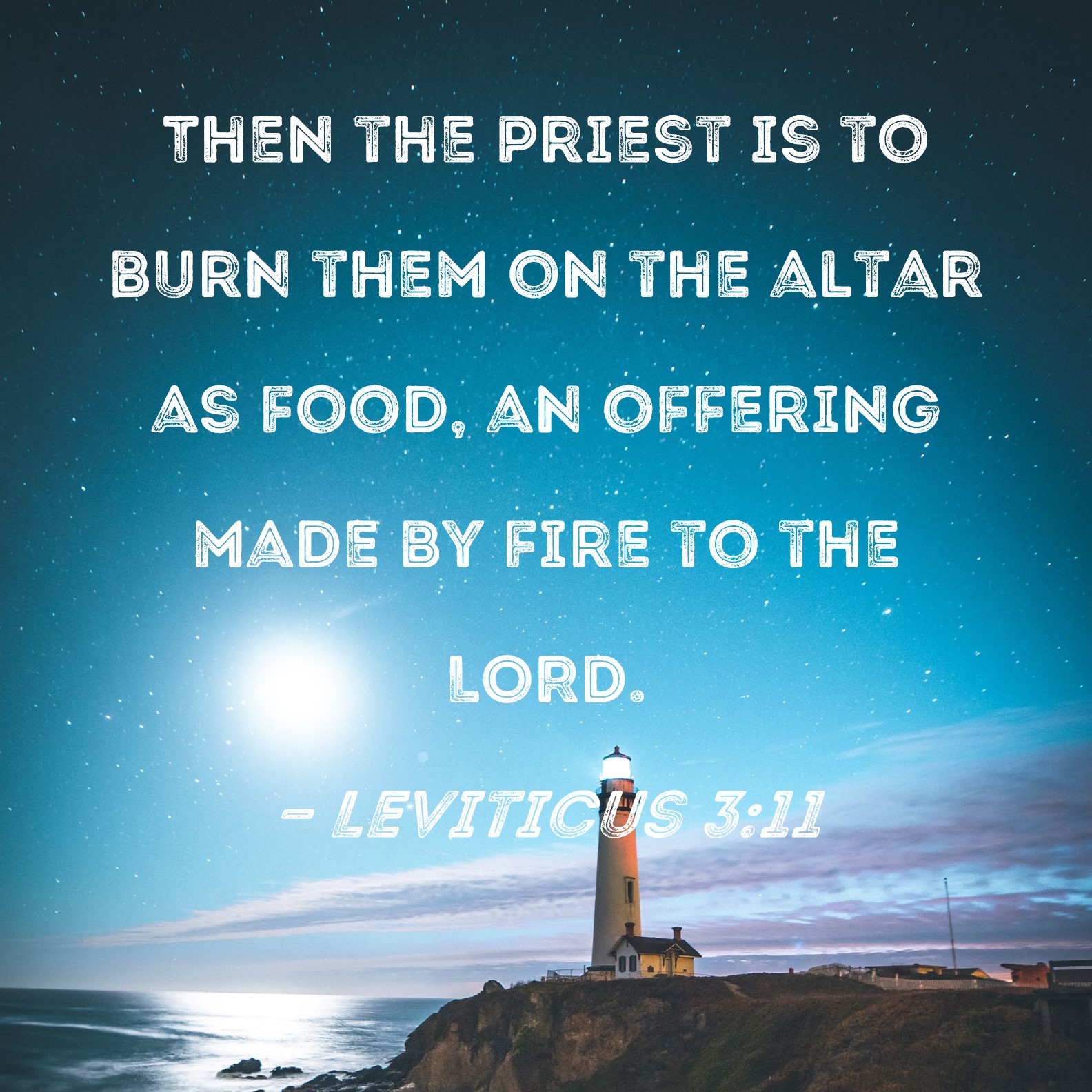Leviticus 3:11 Then the priest is to burn them on the altar as food, an offering made by fire to the LORD.