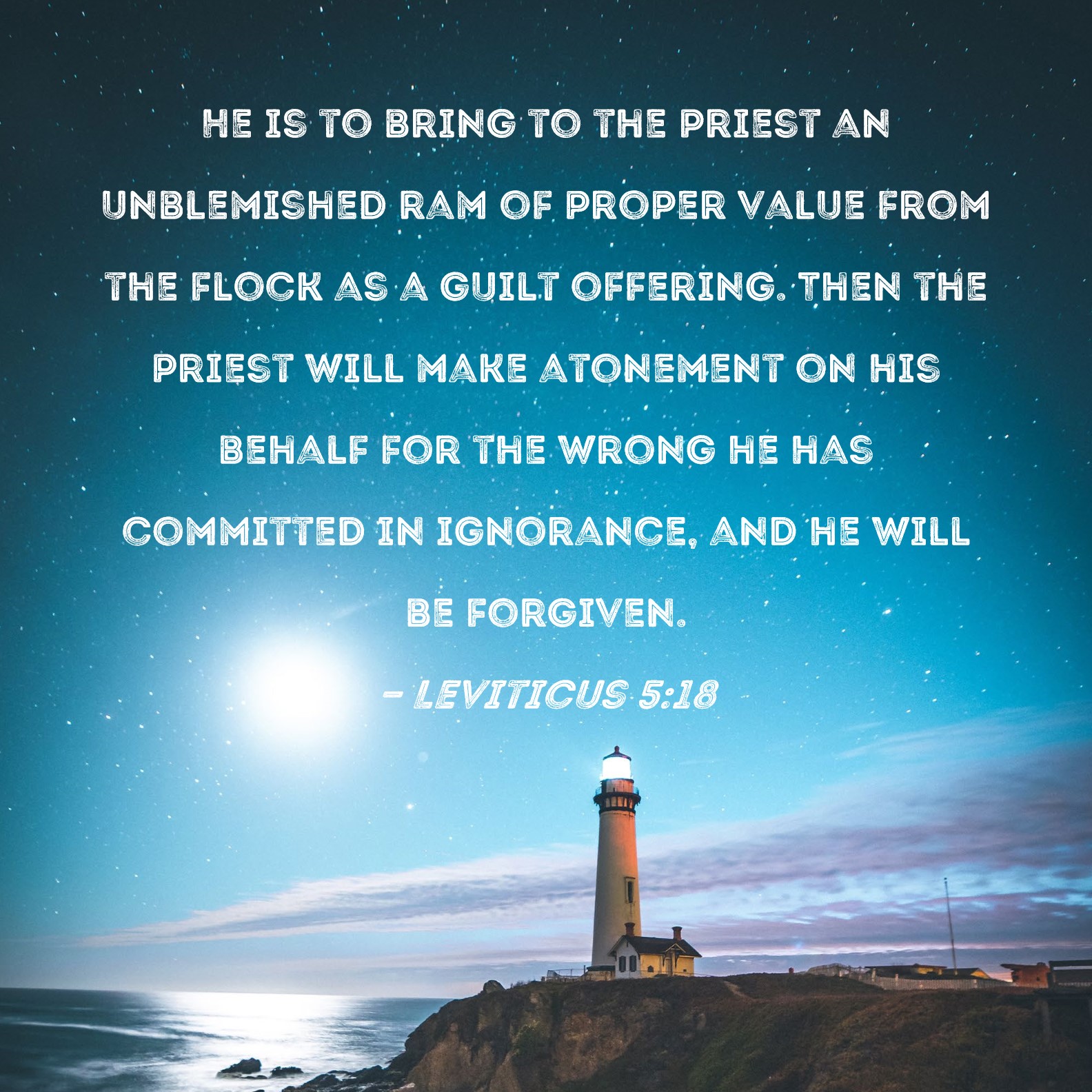 Leviticus 5:18 He is to bring to the priest an unblemished ram of proper value from the flock as a guilt offering. Then the priest will make atonement on his behalf for the wrong he has committed in ignorance, and he will be forgiven.