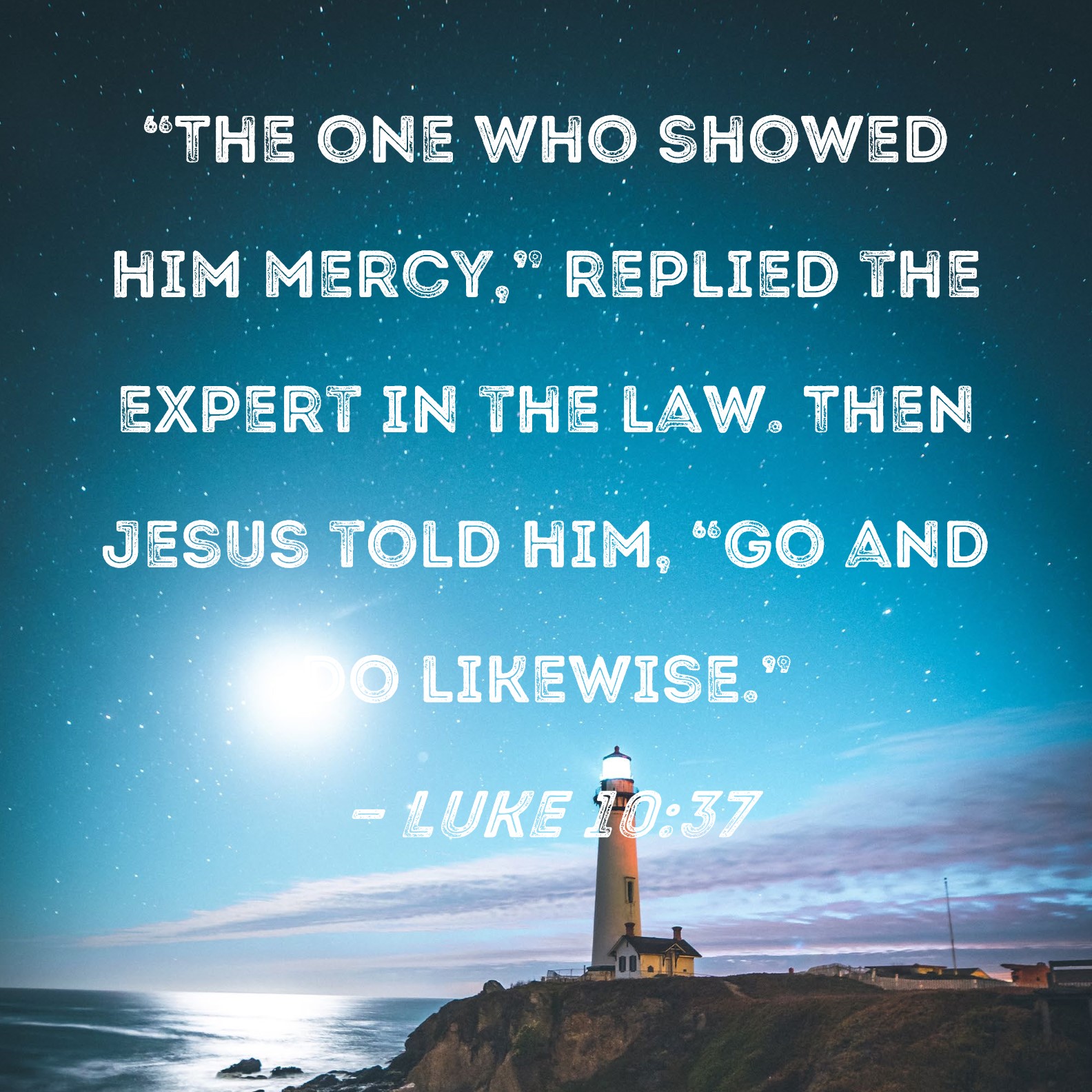 Luke 10:37 "The one who showed him mercy," replied the expert in the law. Then Jesus told him, "Go and do likewise."