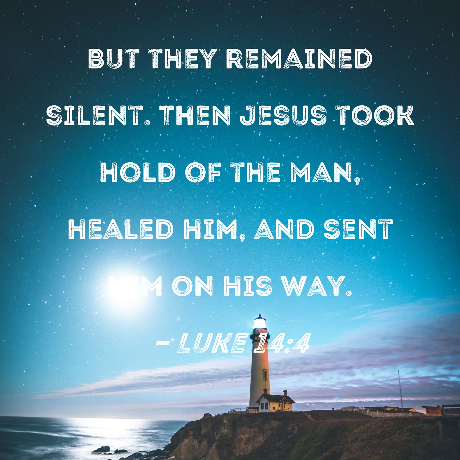 Luke 14:4 But they remained silent. Then Jesus took hold of the man, healed him, and sent him on his way.