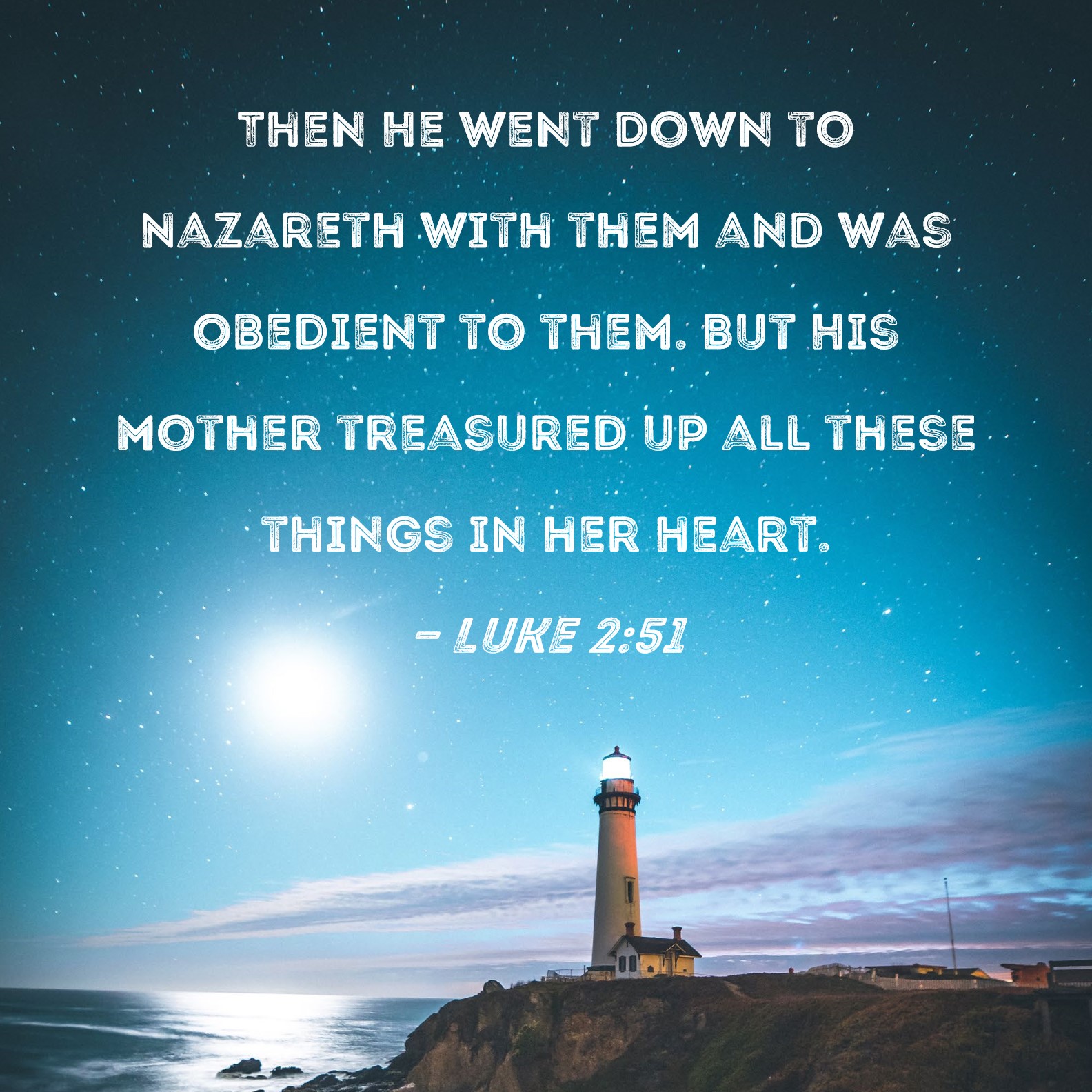 Luke 2:51 Then He went down to Nazareth with them and was obedient to them. But His mother treasured up all these things in her heart.