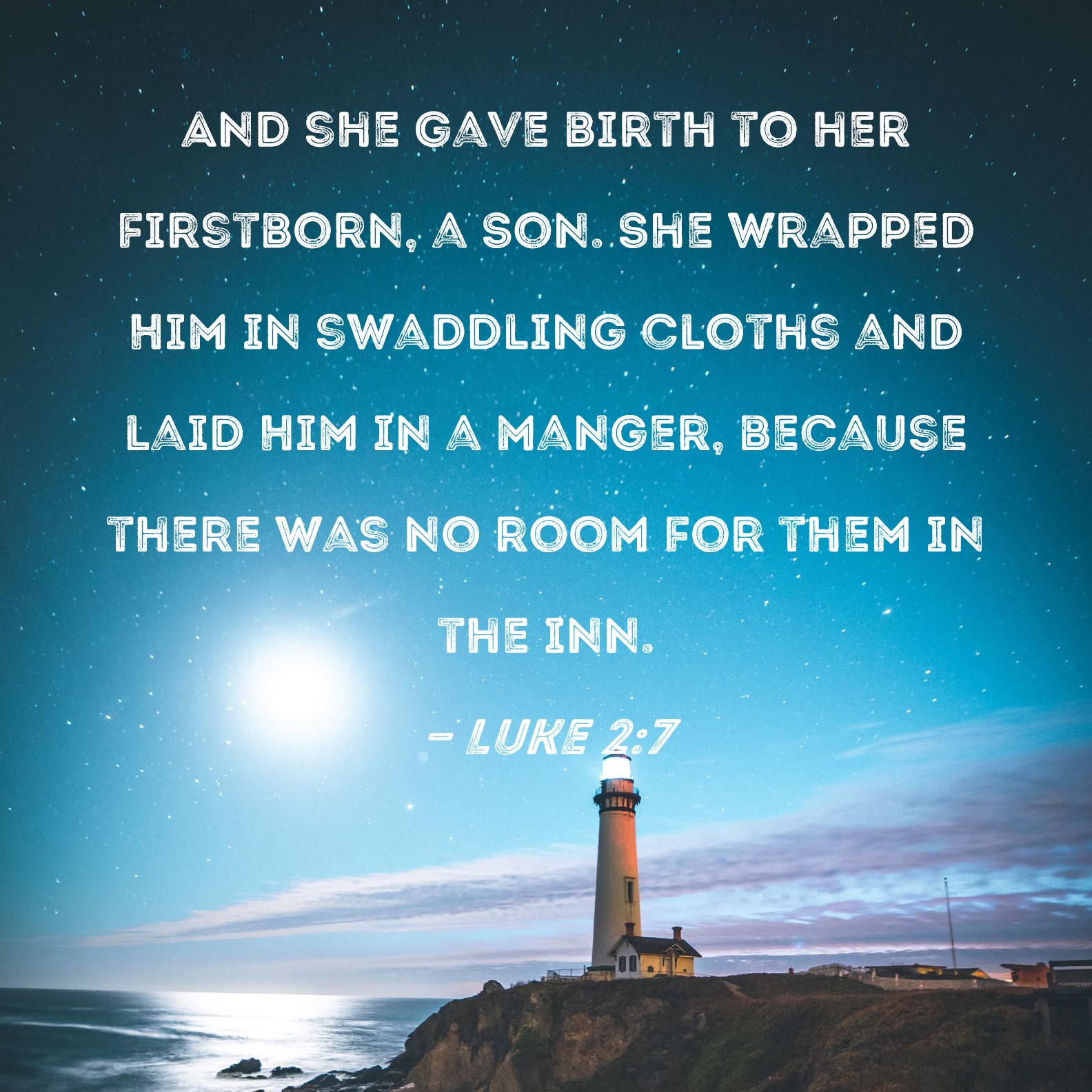 Luke 2:7 And she gave birth to her firstborn, a Son. She wrapped Him in swaddling cloths and laid Him in a manger, because there was no room for them in the inn.