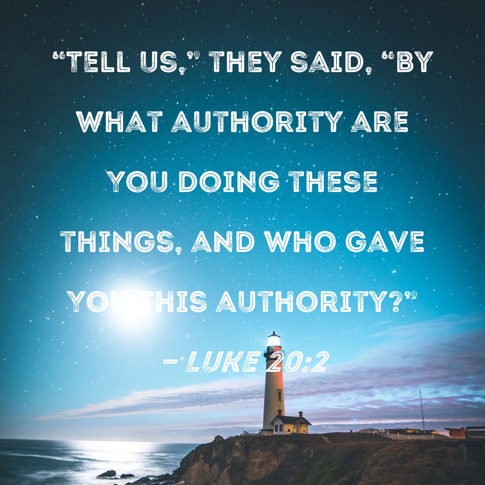 Luke 20:2 "Tell us," they said, "by what authority are You doing these things, and who gave You this authority?"