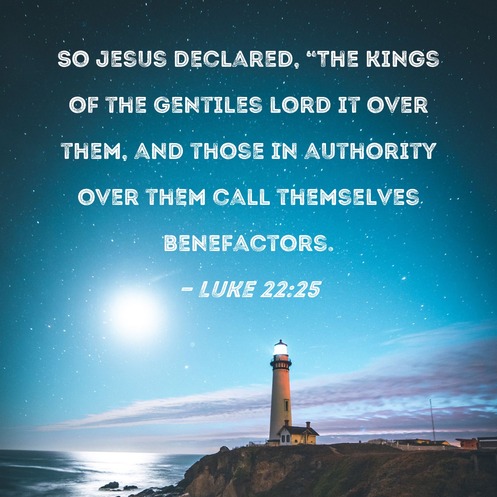 Luke 22:25 So Jesus declared, "The kings of the Gentiles lord it over them, and those in authority over them call themselves benefactors.