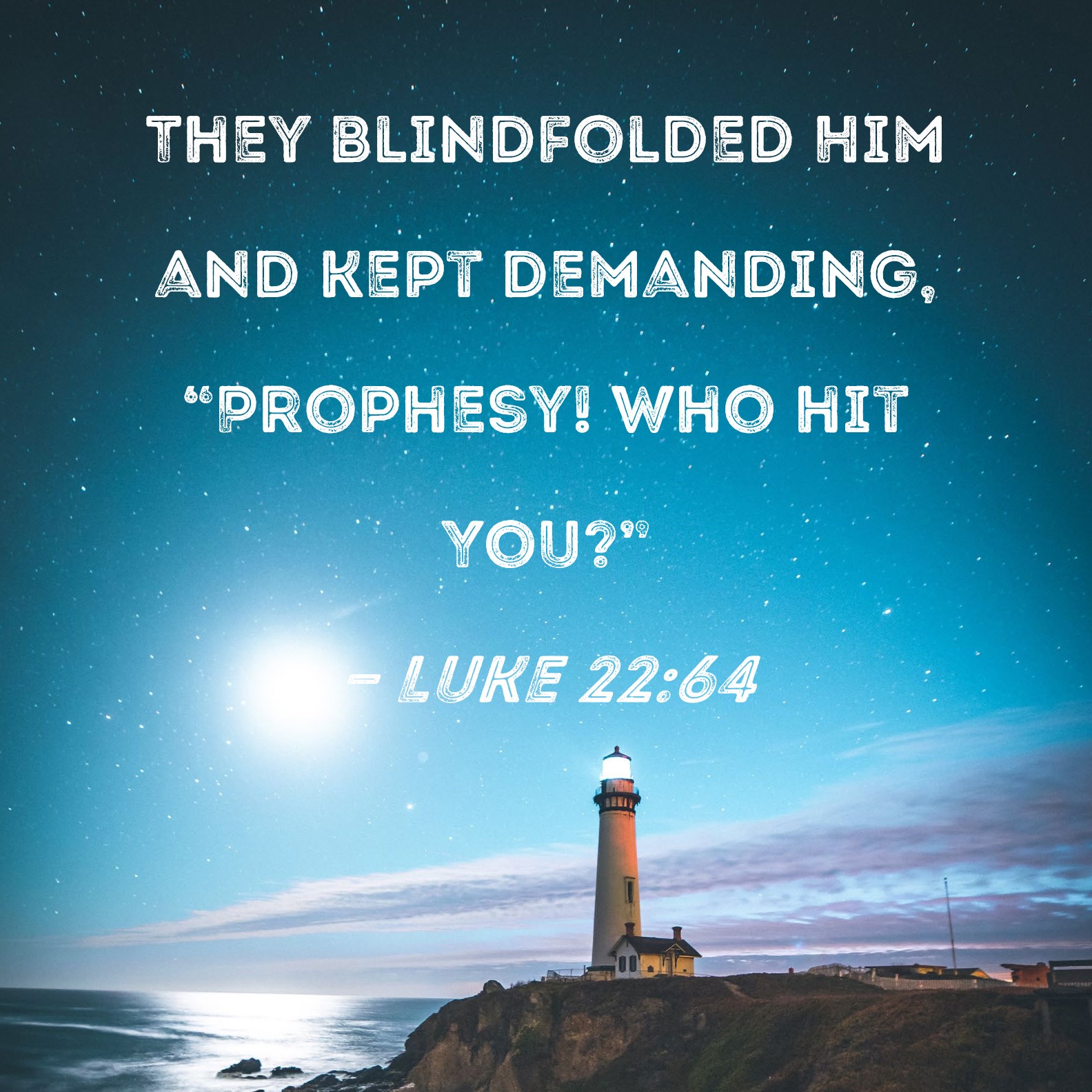 Luke 22:64 They blindfolded Him and kept demanding, "Prophesy! Who hit You?"