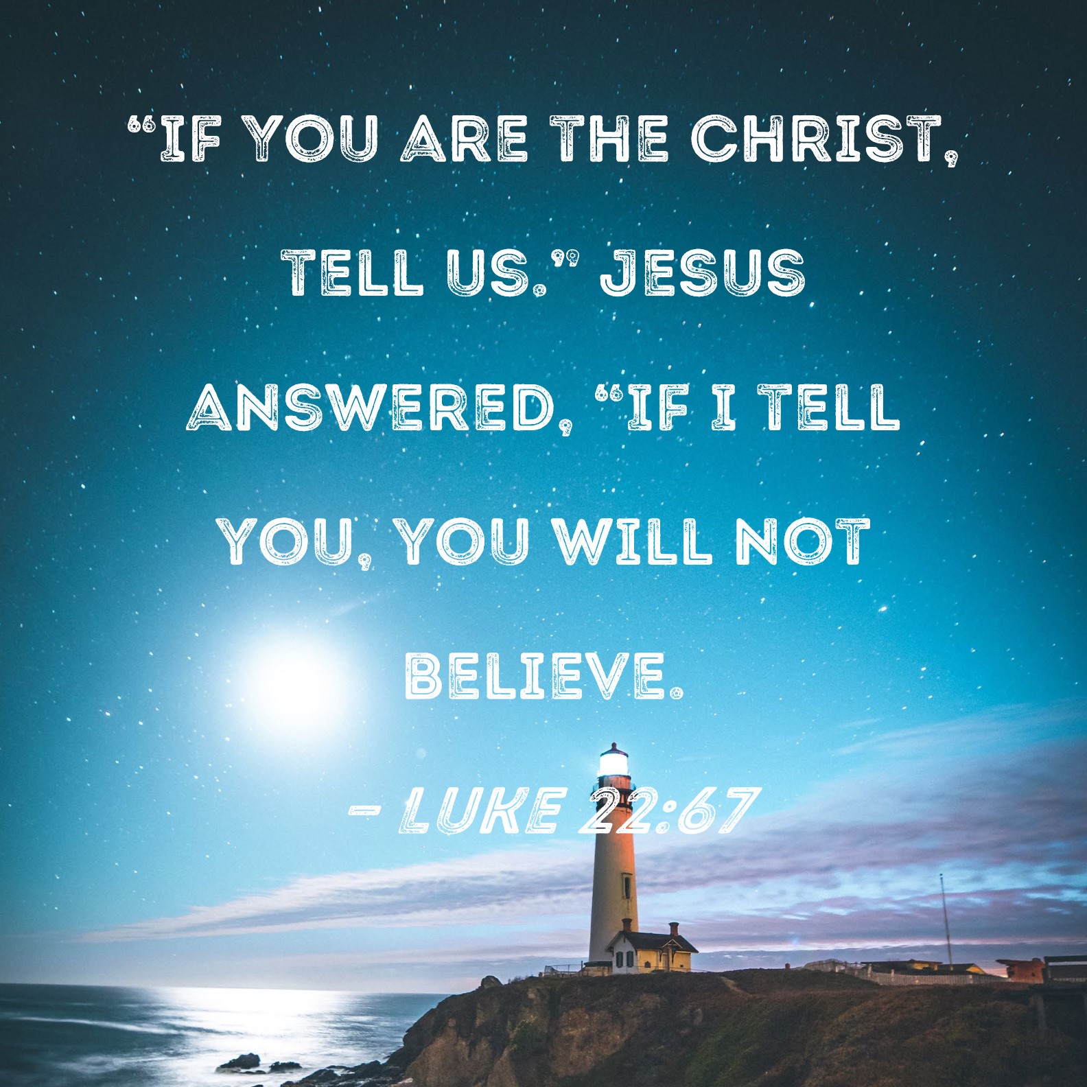 Luke 22:67 "If You are the Christ, tell us." Jesus answered, "If I tell you, you will not believe.