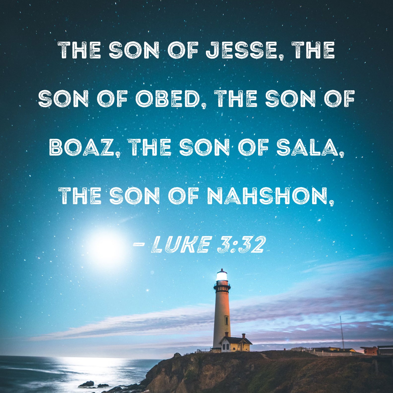 Luke 3:32 the son of Jesse, the son of Obed, the son of Boaz, the son of Sala, the son of Nahshon,