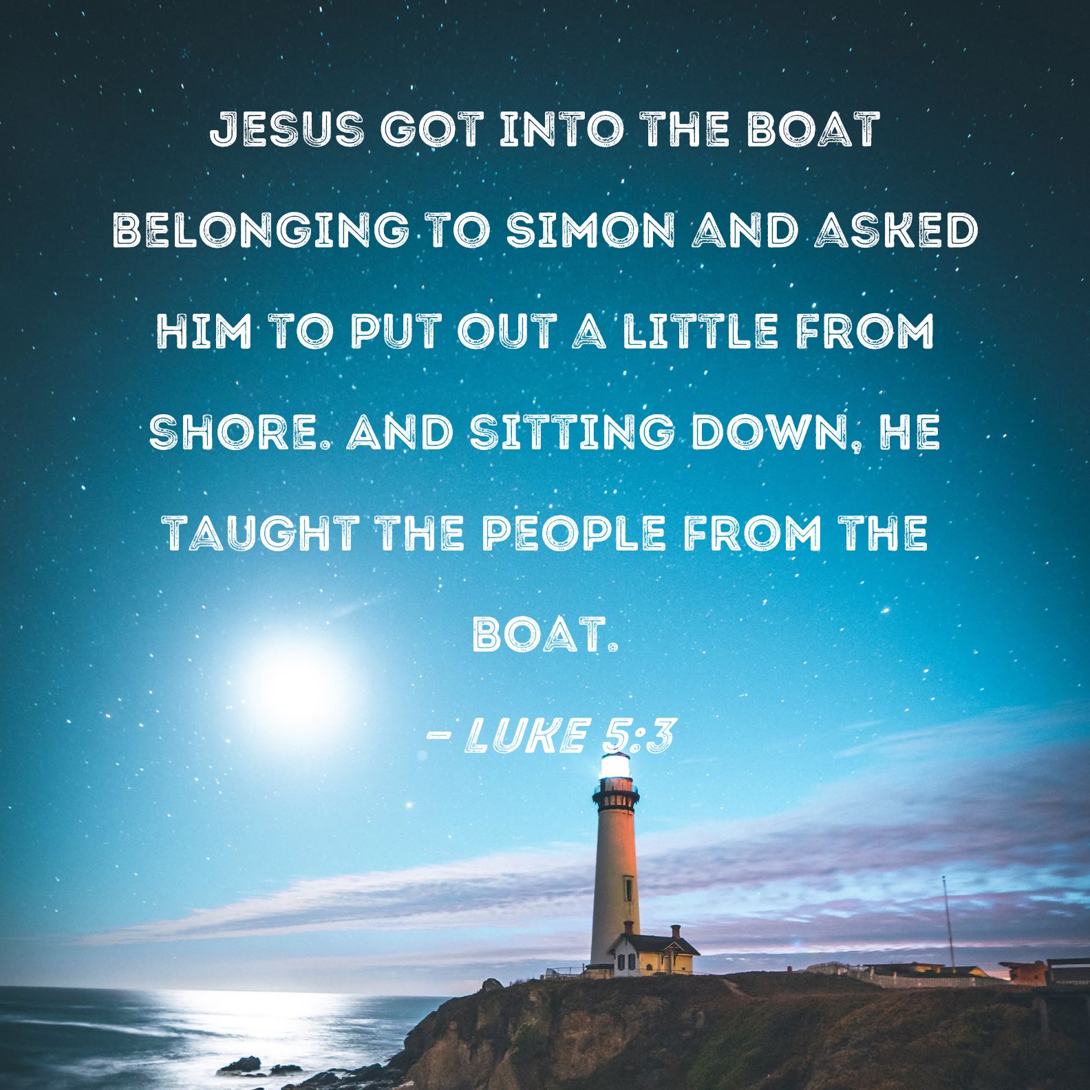 Luke 5:3 Jesus got into the boat belonging to Simon and asked him to put out a little from shore. And sitting down, He taught the people from the boat.