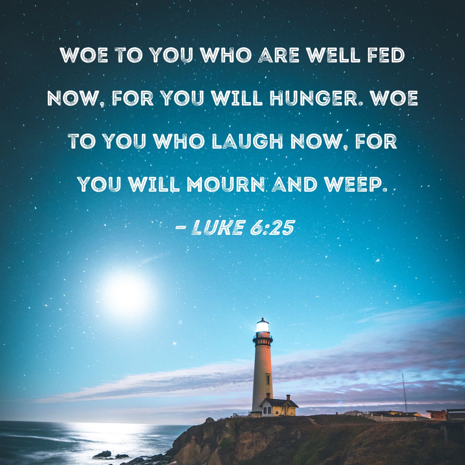 Luke 6:25 Woe to you who are well fed now, for you will hunger. Woe to you who laugh now, for you will mourn and weep.