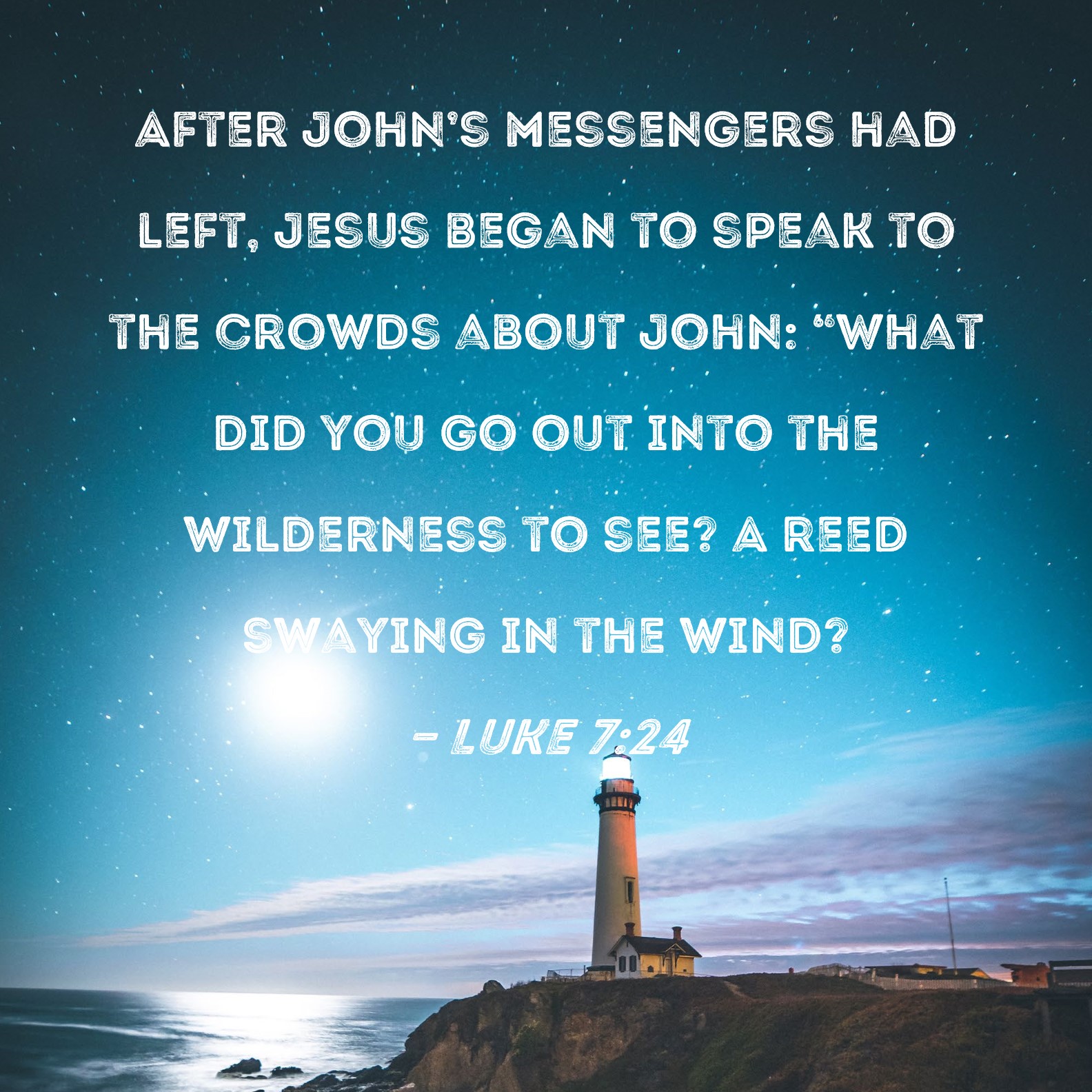 Luke 7:24 After John's messengers had left, Jesus began to speak to the crowds about John: "What did you go out into the wilderness to see? A reed swaying in the wind?