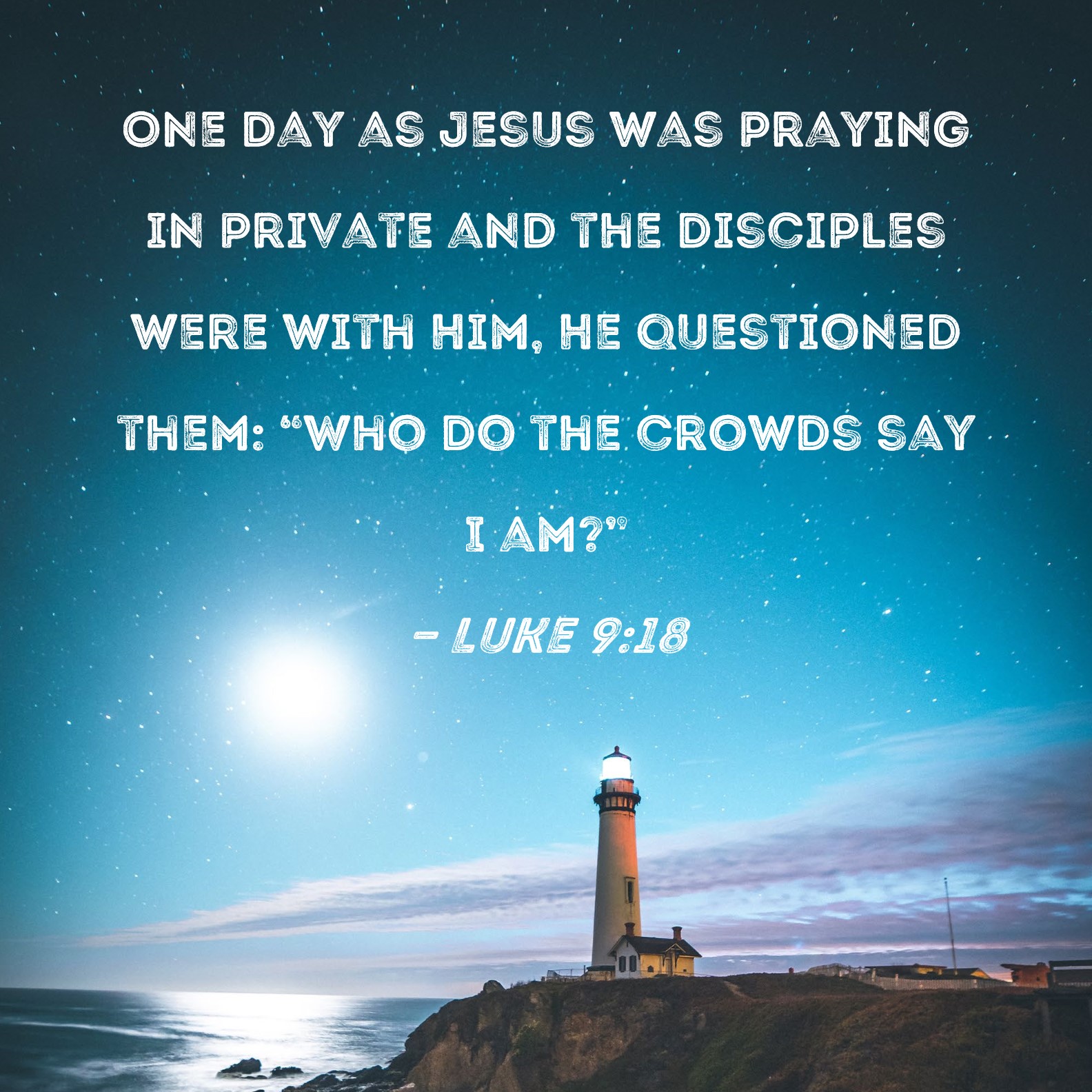 Luke 9:18 One day as Jesus was praying in private and the disciples were with Him, He questioned them: "Who do the crowds say I am?"
