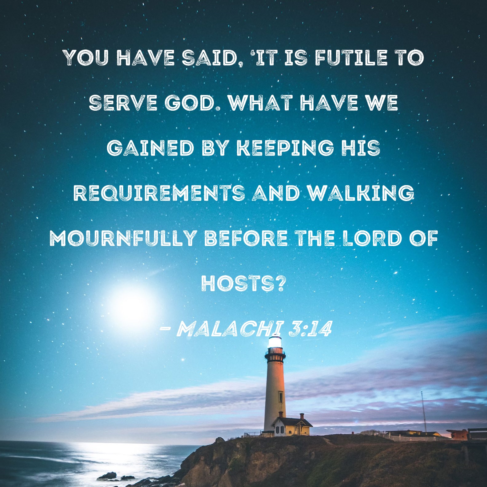 Malachi 3:14 You have said, 'It is futile to serve God. What have we gained by keeping His requirements and walking mournfully before the LORD of Hosts?