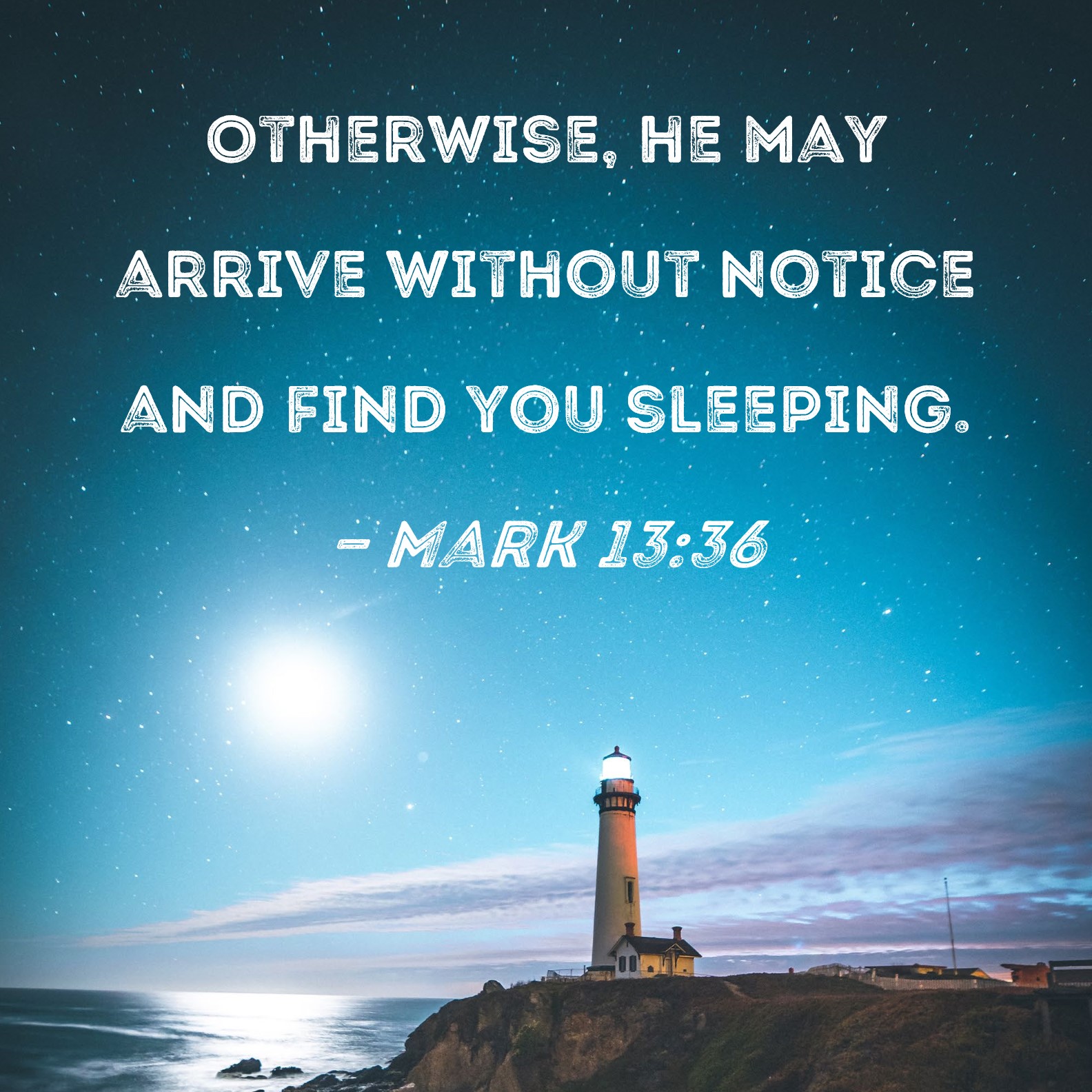 Mark 13:36 Otherwise, he may arrive without notice and find you sleeping.