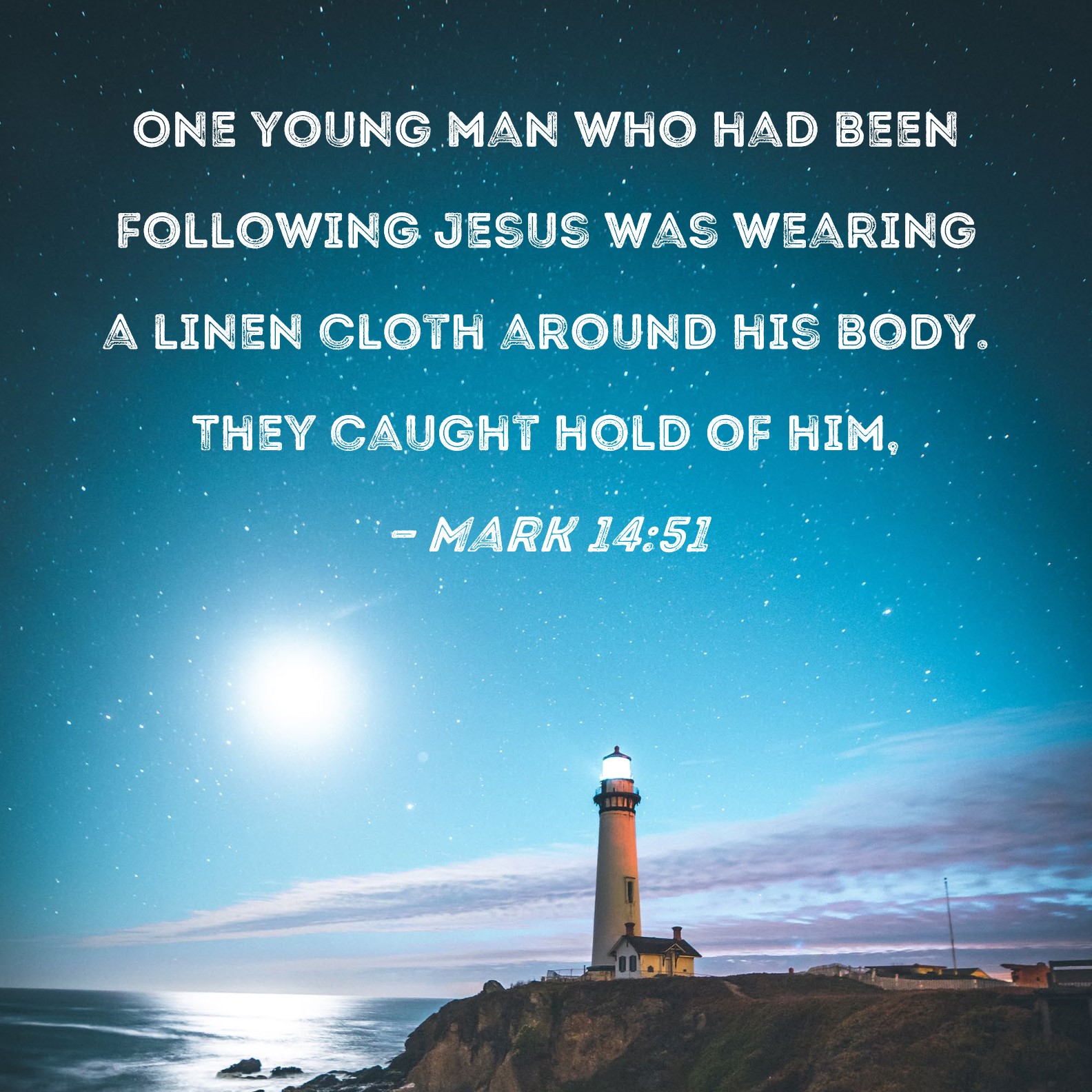 Mark 14:51 One young man who had been following Jesus was wearing a linen cloth around his body. They caught hold of him,