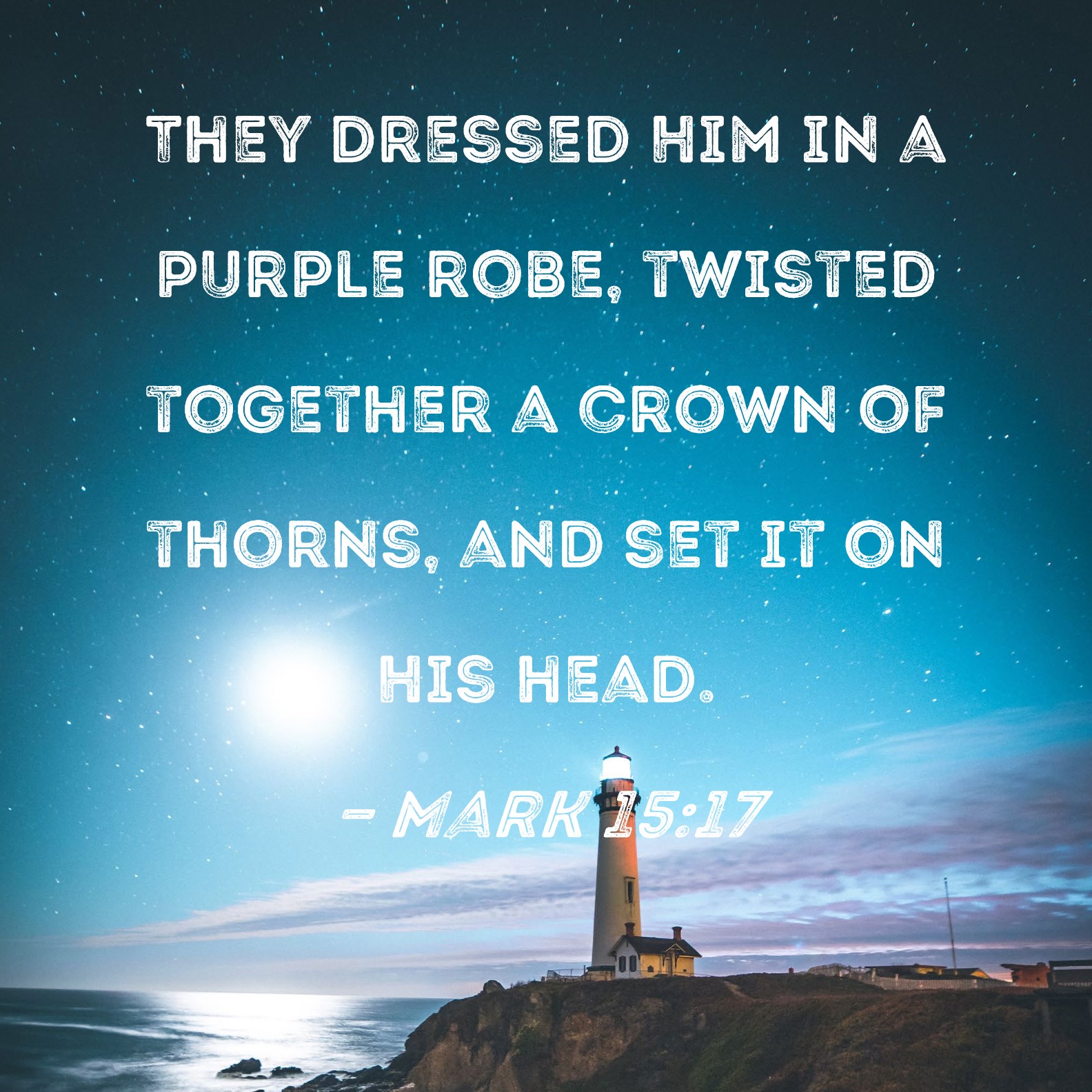 Mark 15:17 They dressed Him in a purple robe, twisted together a crown of thorns, and set it on His head.